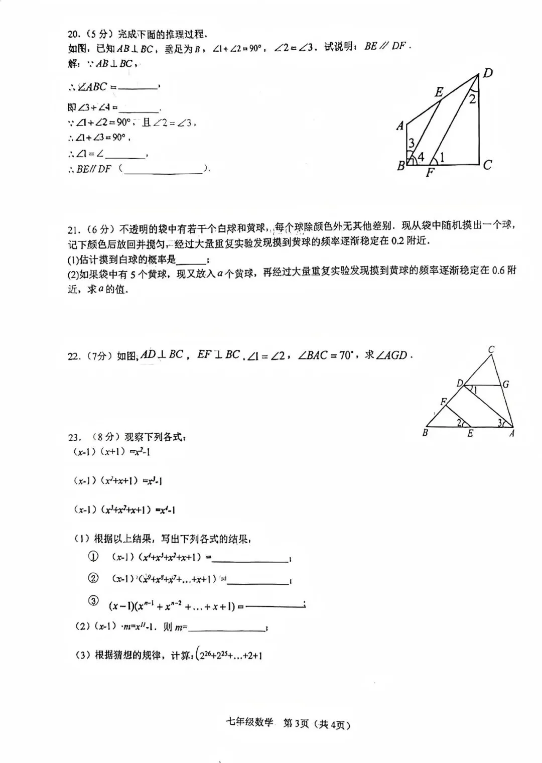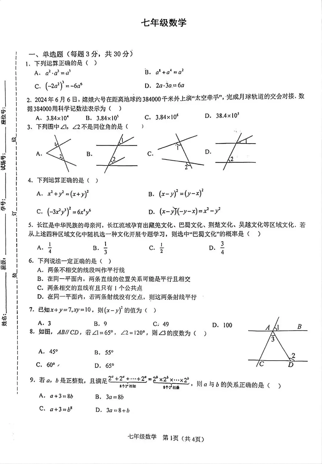 2025年初一下,初二下期中数学试卷