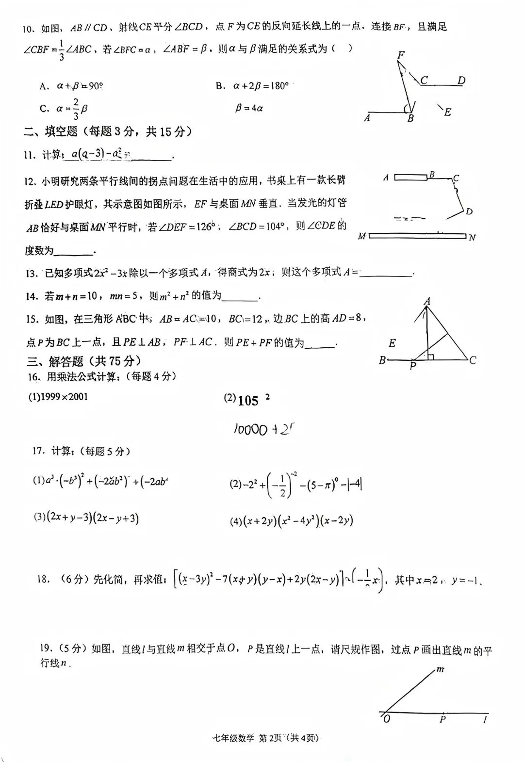 临沂七下期中数学试卷word版
