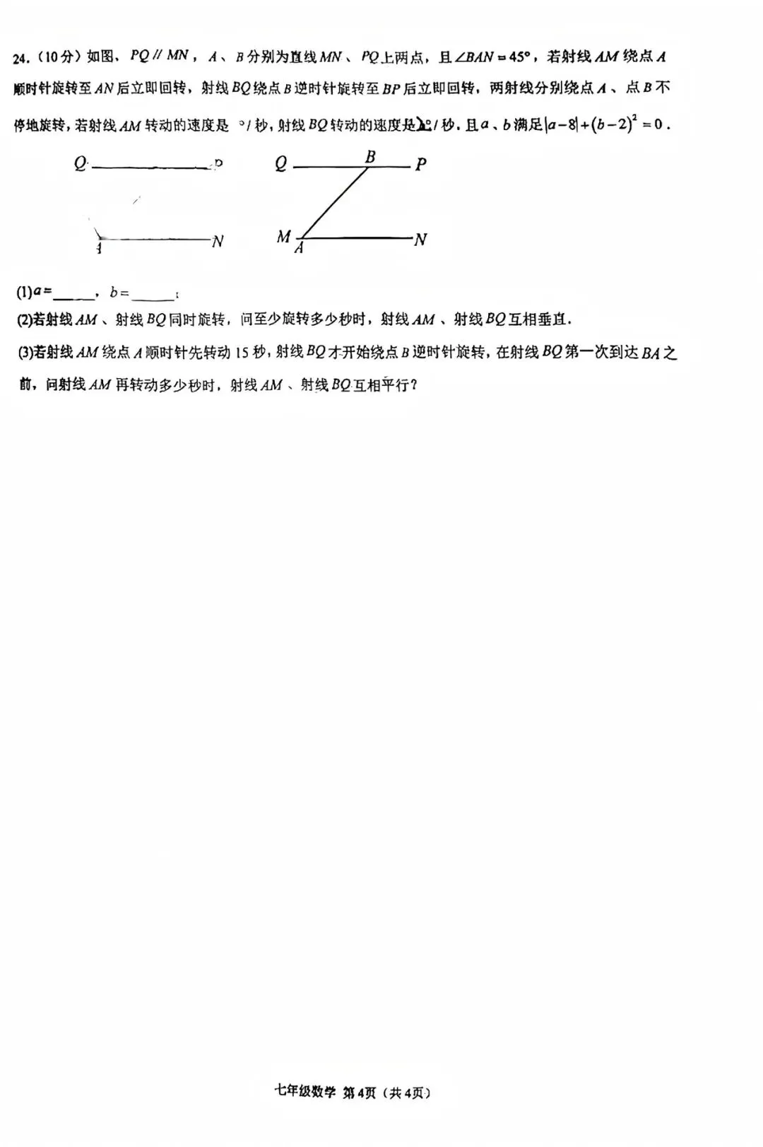 >【七年级数学月考试卷】2025-2026学年西安市铁一中,三中七年级(下)第一次月考数学