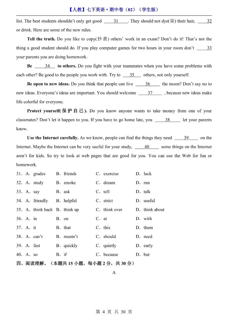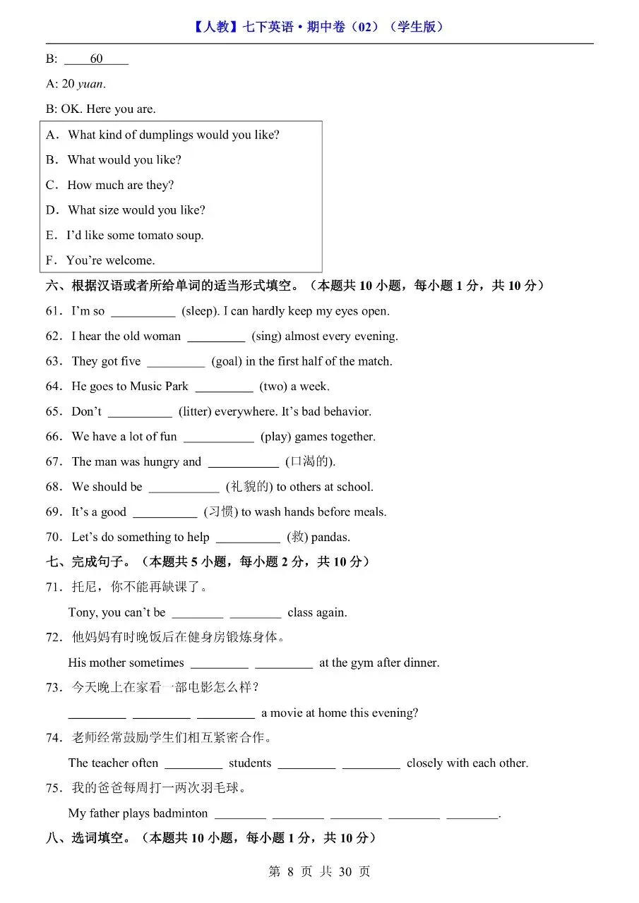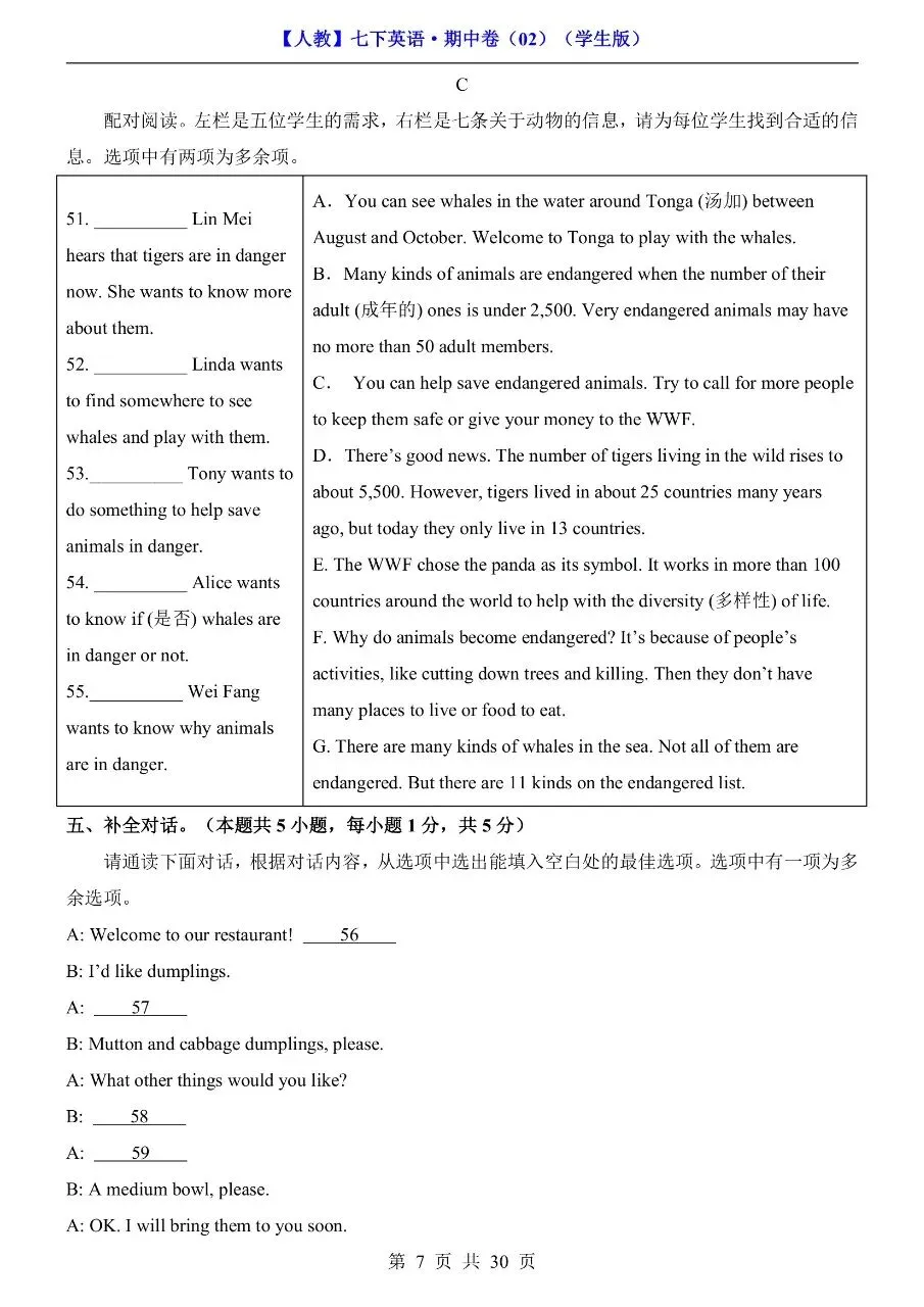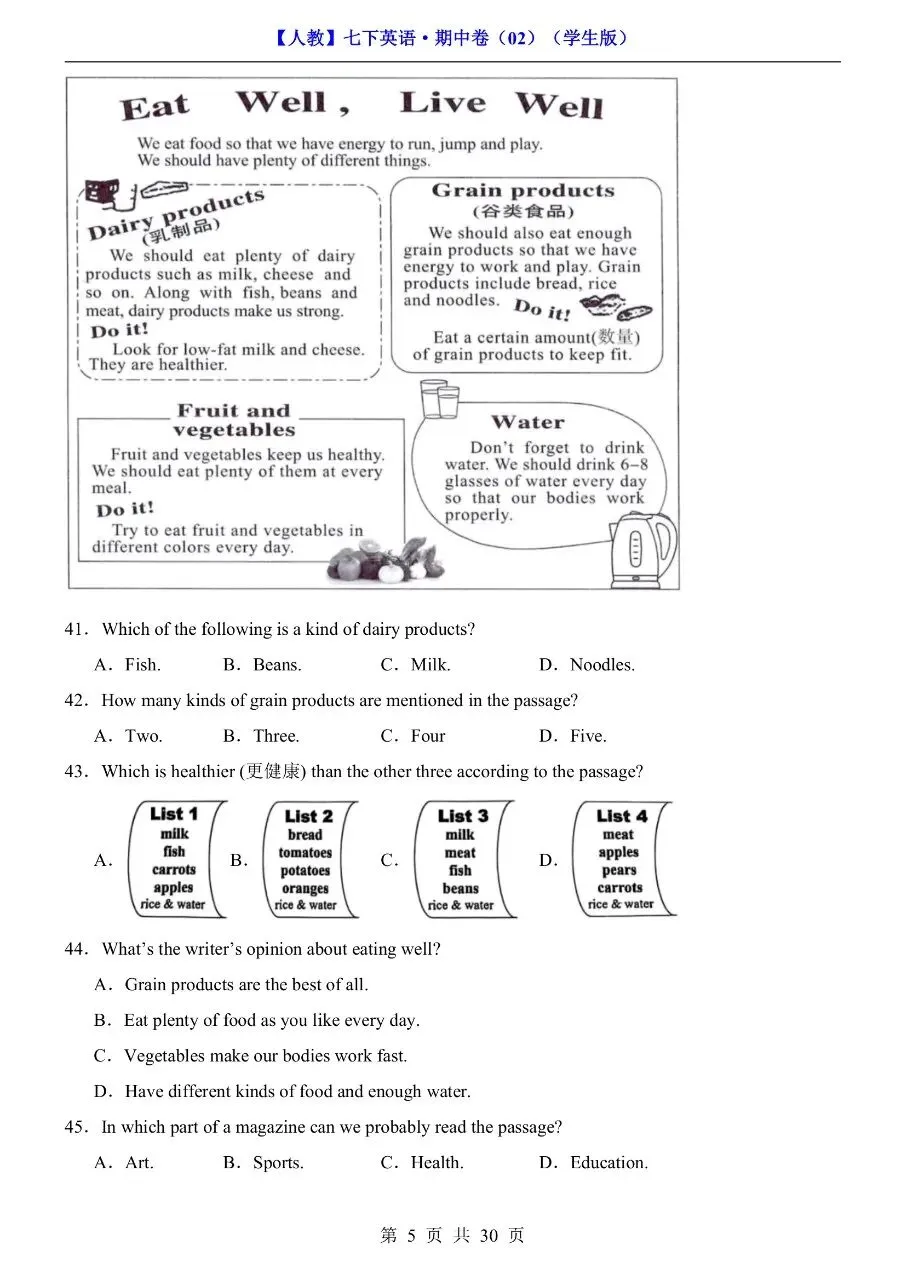 26年春七年级下册人教版英语期中考试卷【共3套】含答案,完整电子版可打印