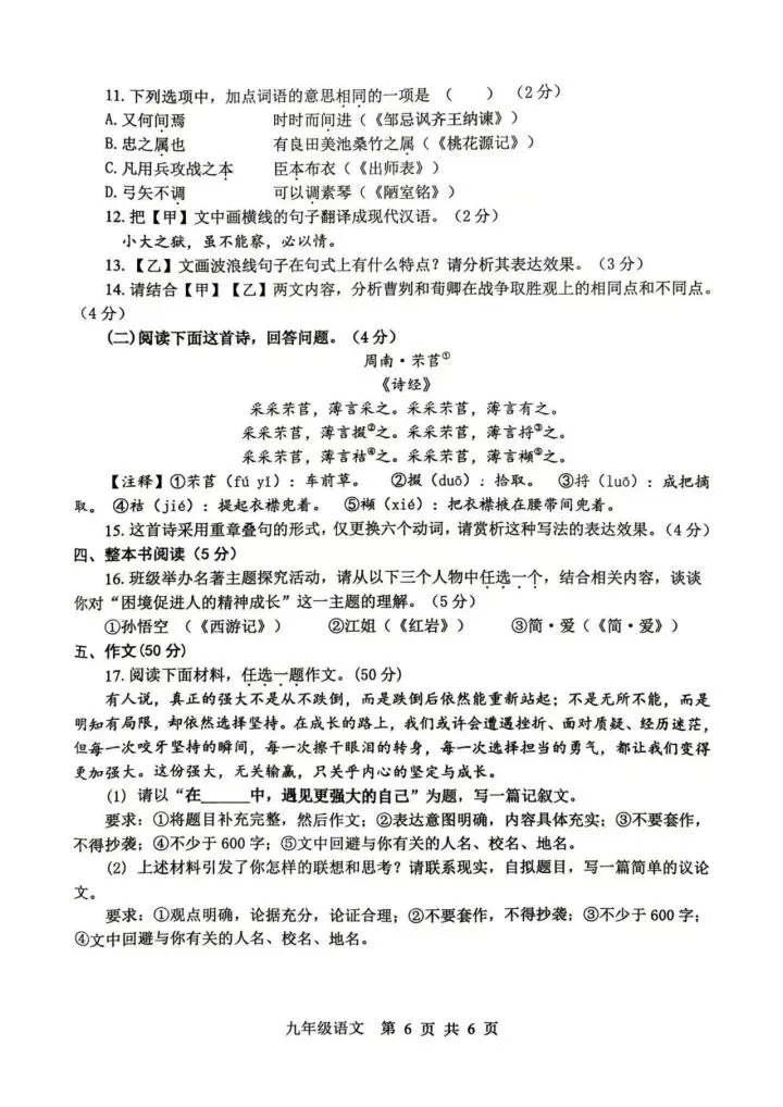 2. 素养导向,贴合课标:全卷严格落实语文核心素养(文化自信、语言运用、思维能力、审美创造),避免了机械刷题,注重考查学生的综合能力。