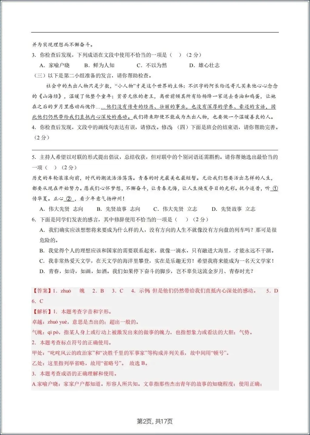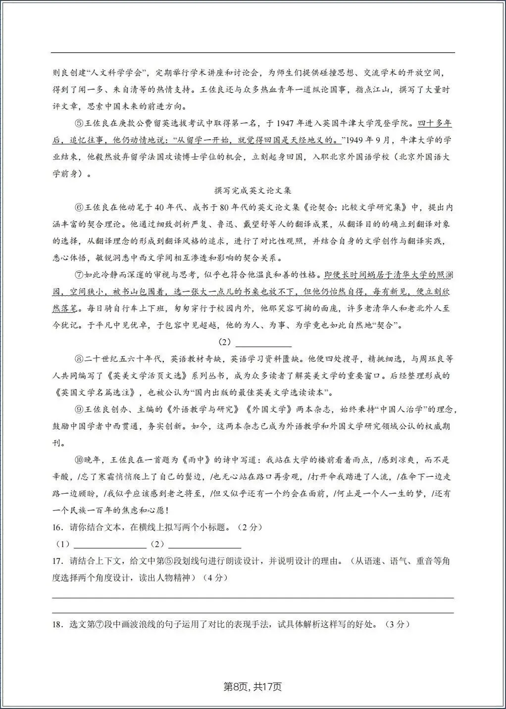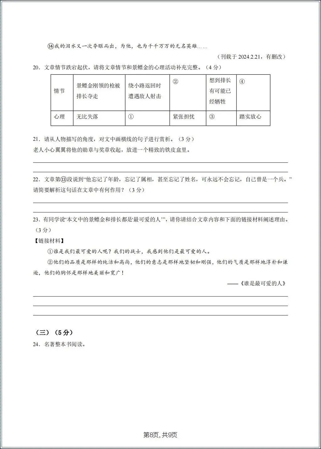 2026春新七年级下册《语文》期中试卷(共8套) 电子版可打印!