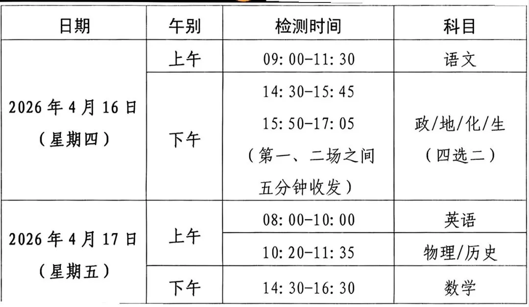 考试日期:2026年4月16-17号