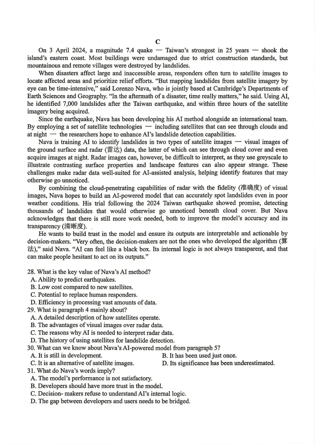 🔝试题及解析查看↑