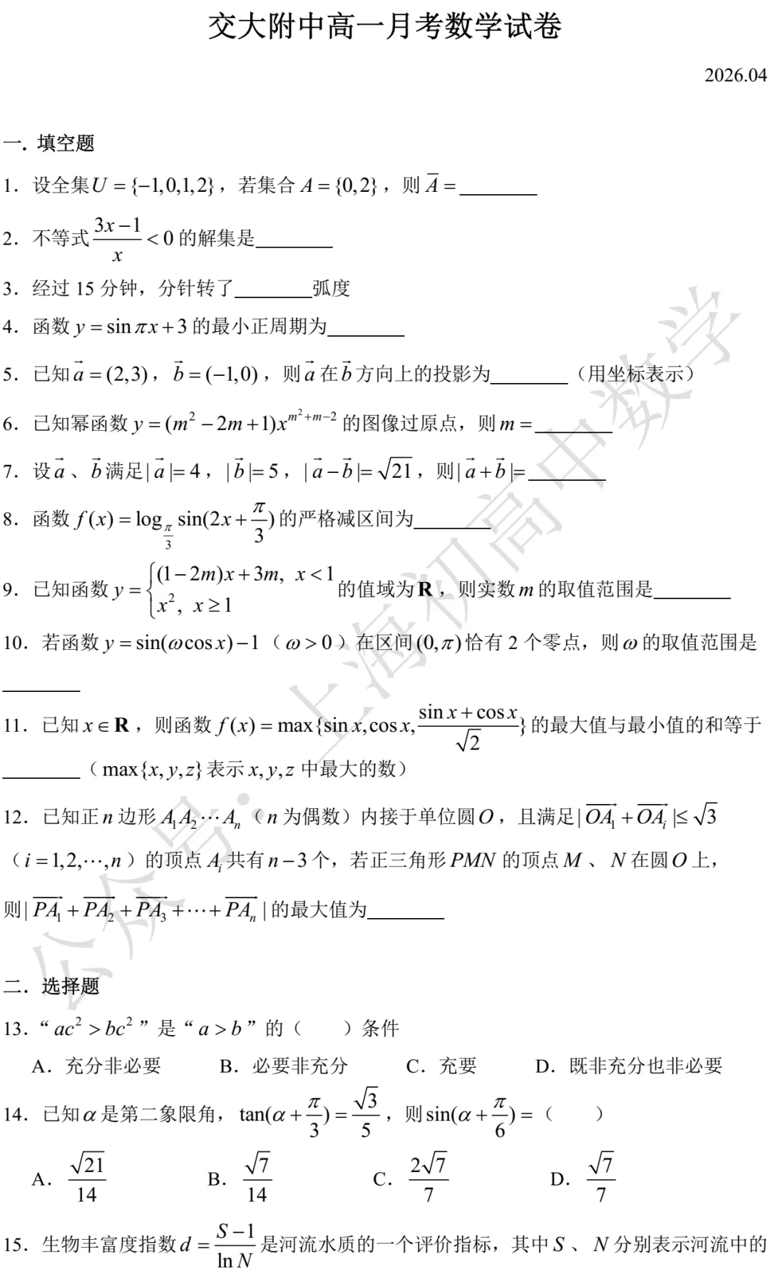 往期试卷资料 2026上海春考数学试卷及答案 近五年上海春考数学试卷及详答 2025上海高考数学试卷及答案 2024上海春考数学试卷及详答