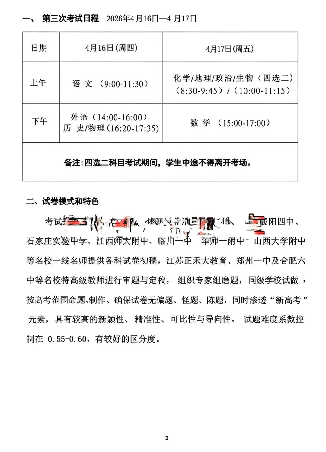 考试名称:2026届安徽省“皖南八校”高三4月第三次大联考