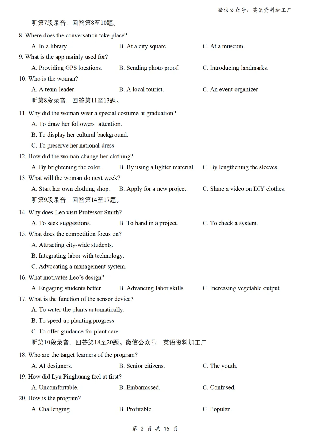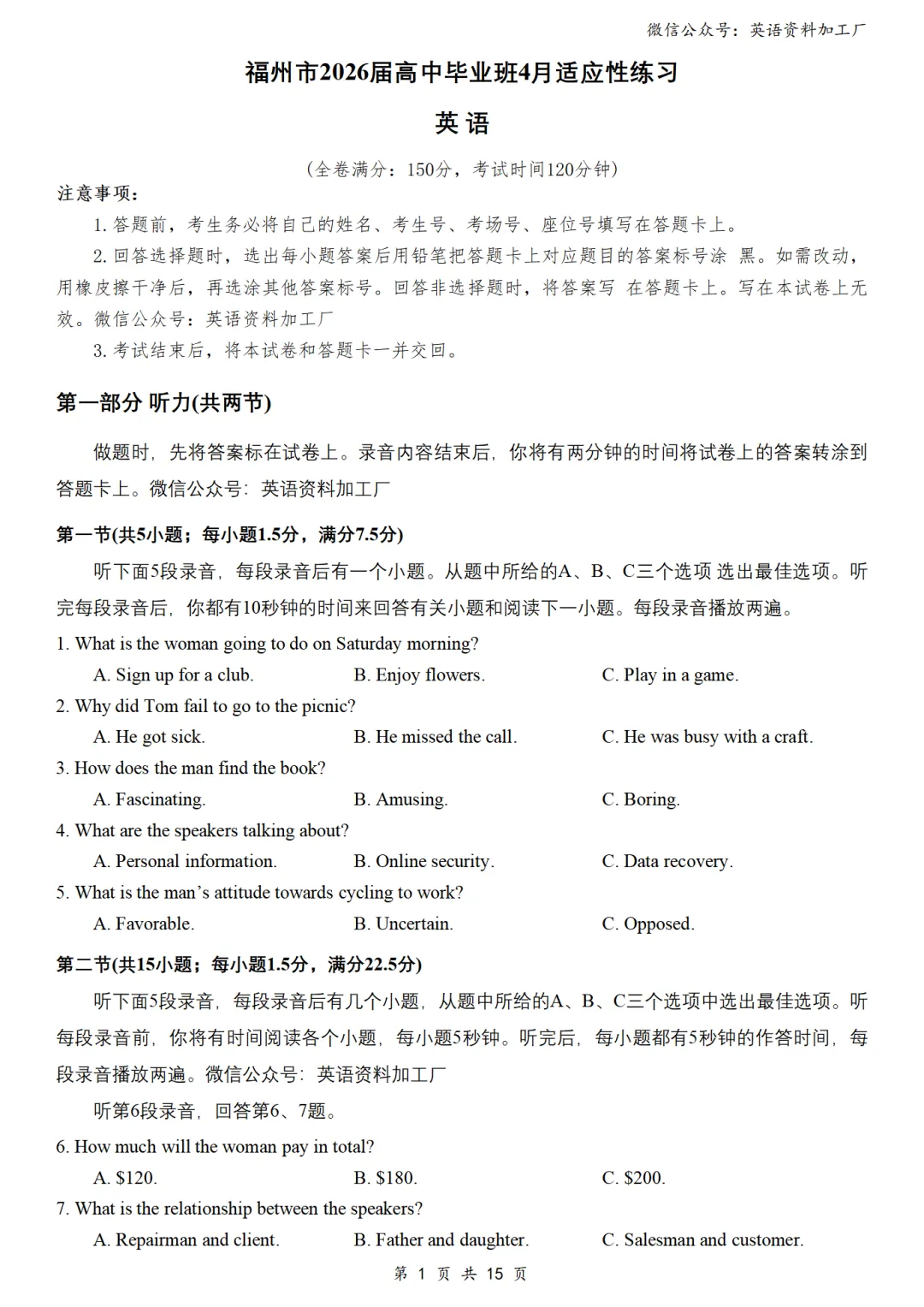 【听力】免费下载!26年3月各地高三联考/模拟考英语听力套题30套合集,含音频、答案和原文