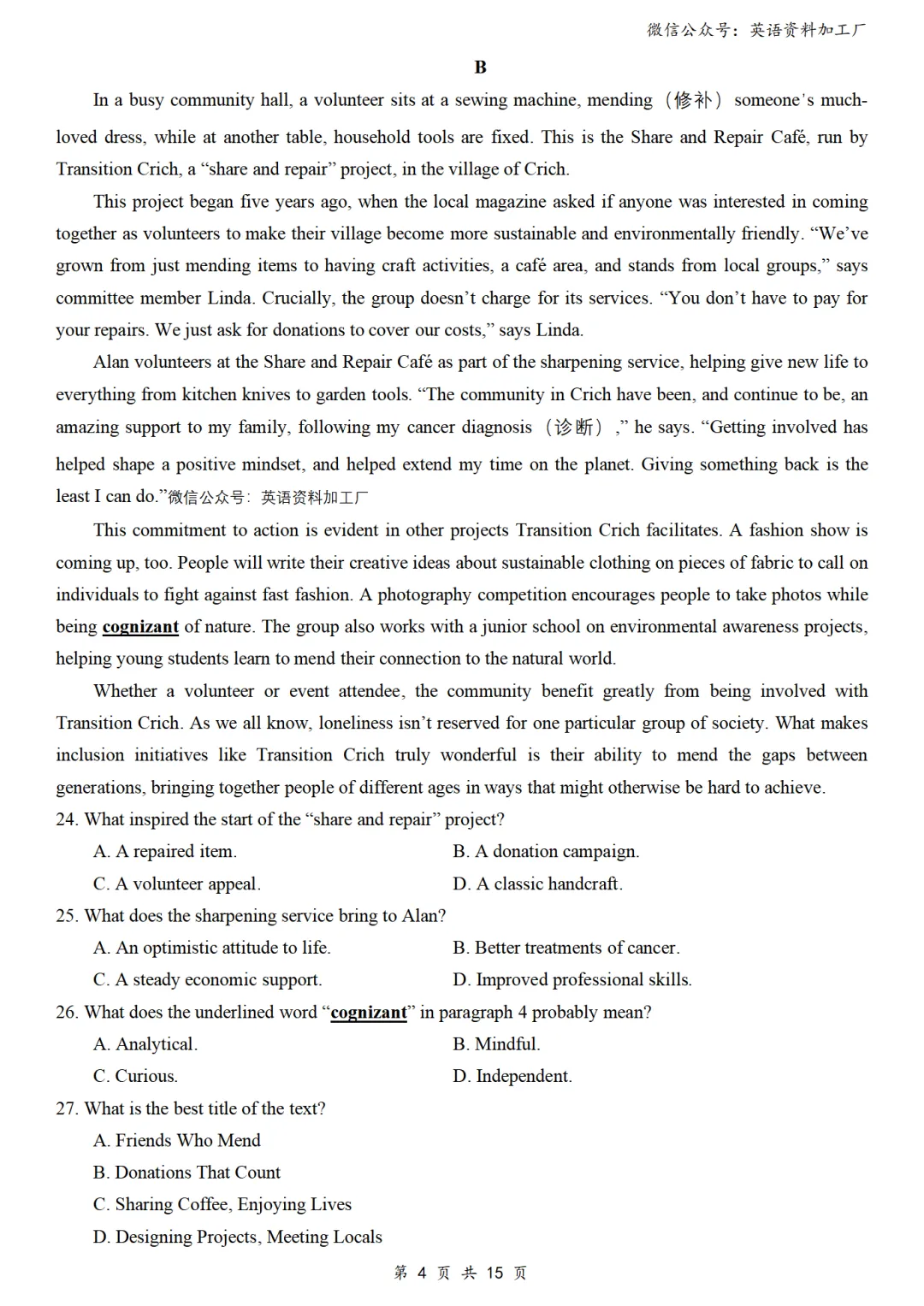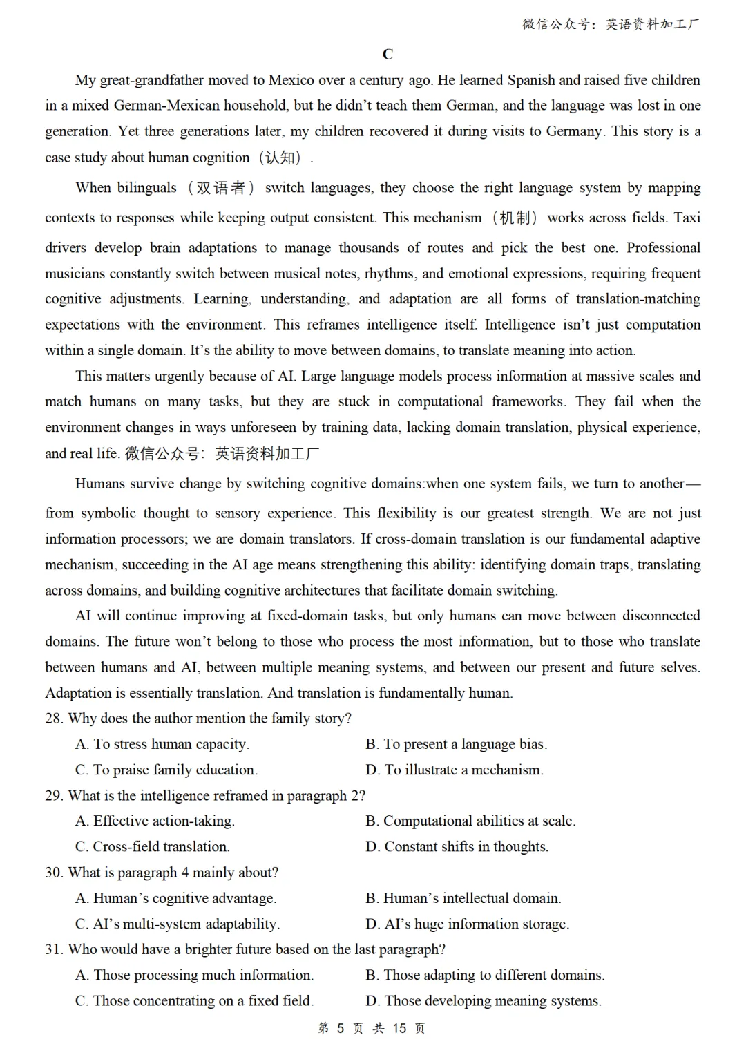 【阅读CD】免费下载!26年3月各地高三联考/模拟考英语阅读C篇、D篇各32篇合集,含答案解析
