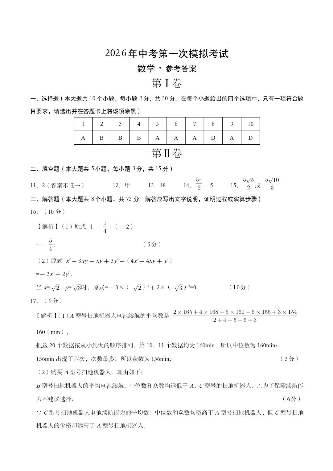 2026年新乡一模数学试卷及答案