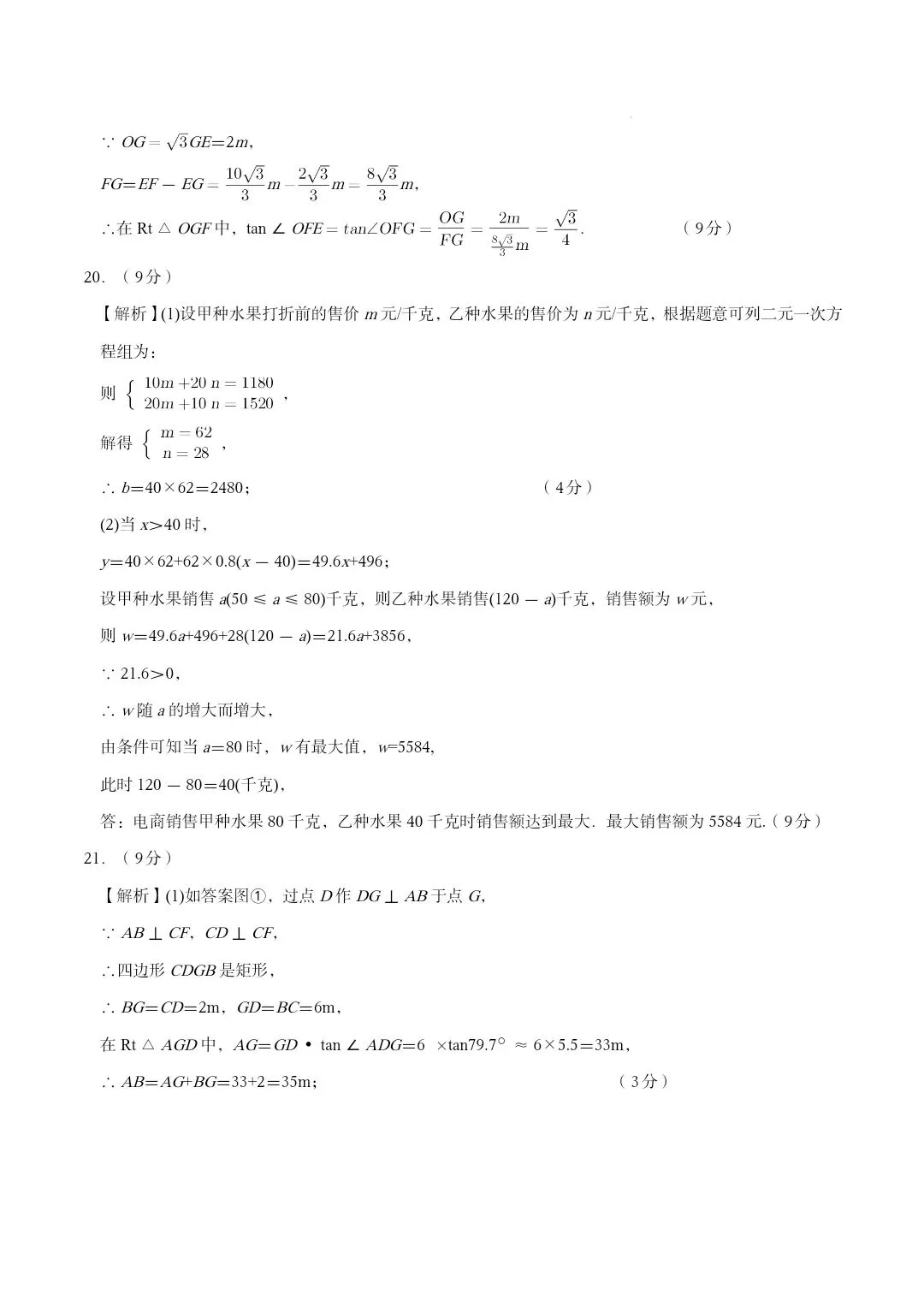 2026年七年级下学期期中数学试卷和答案(下册第6-9章)