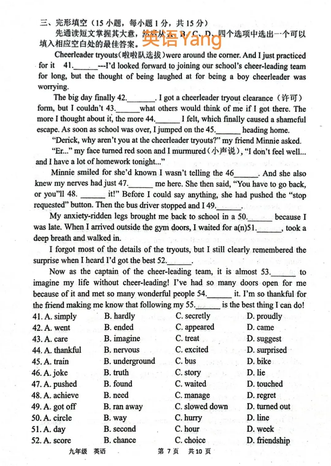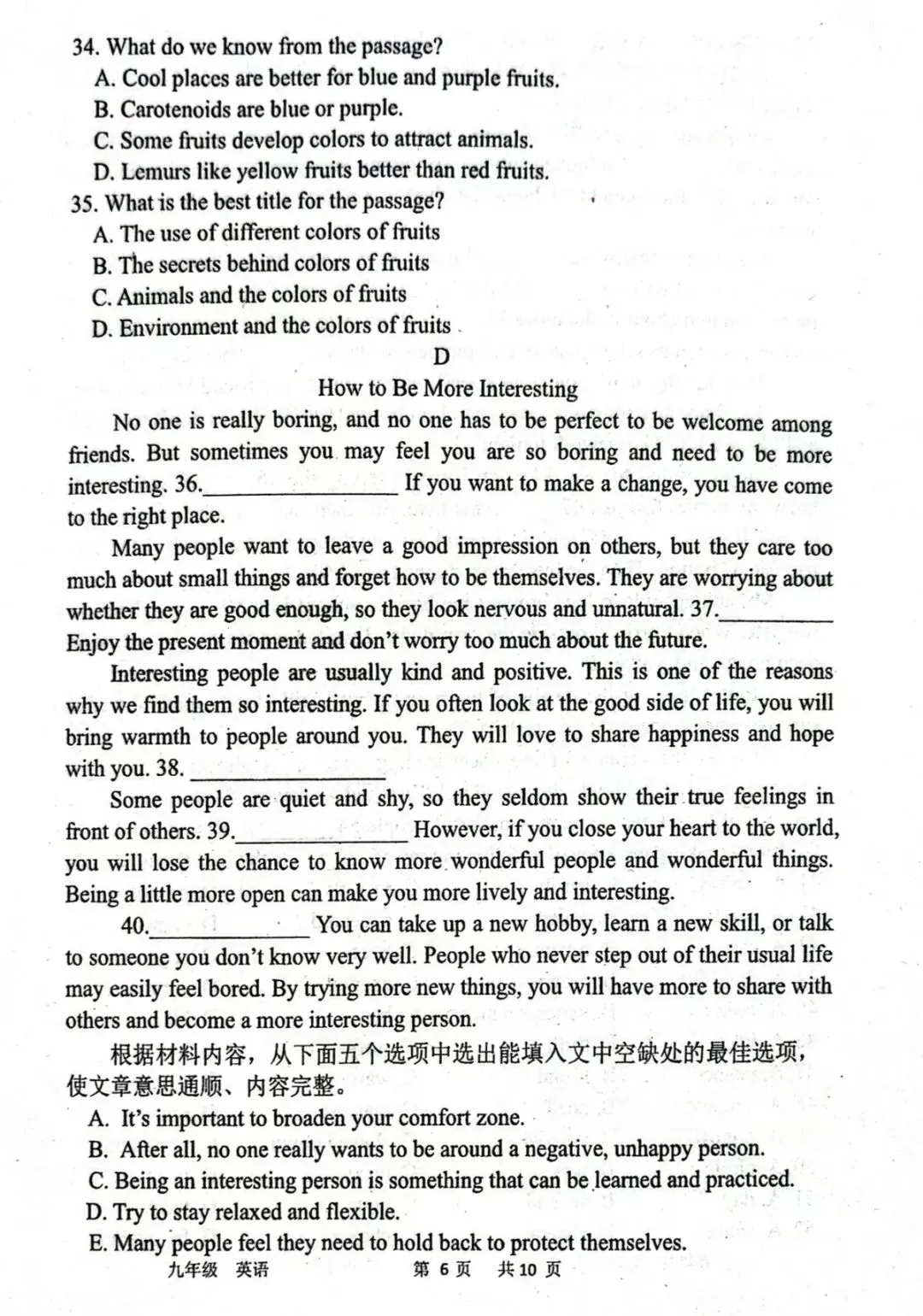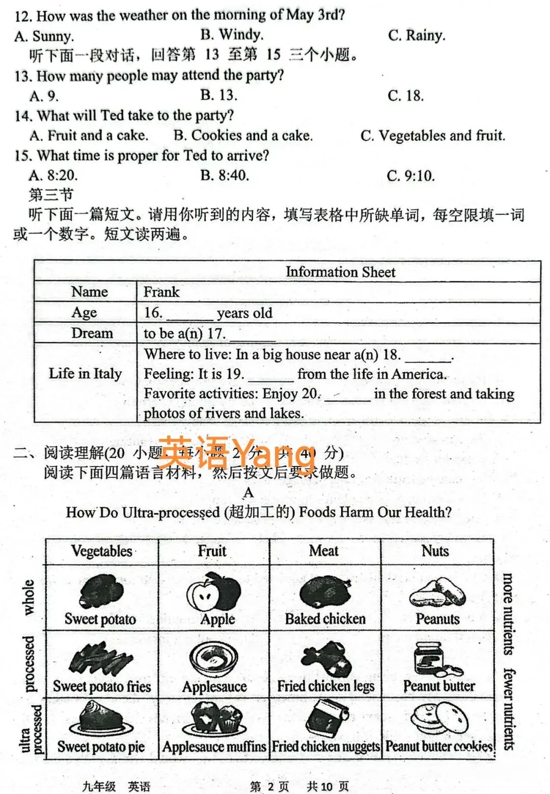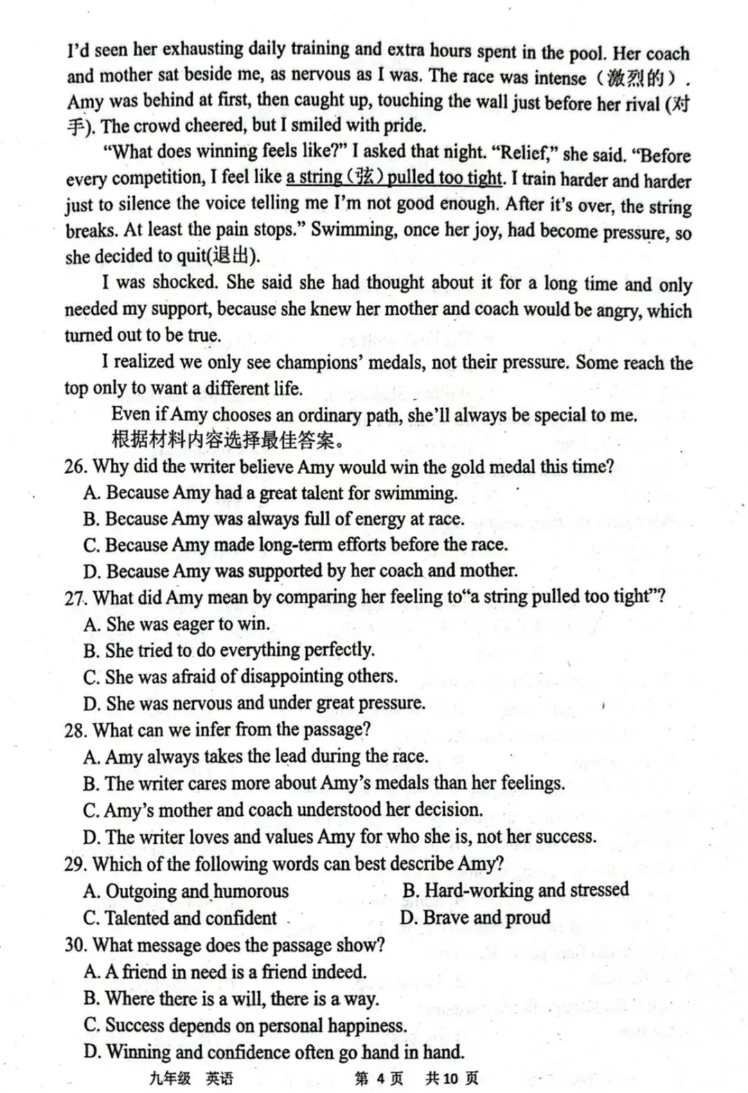 >25-26河南省实验中学中考一模试卷(附听力及答案)