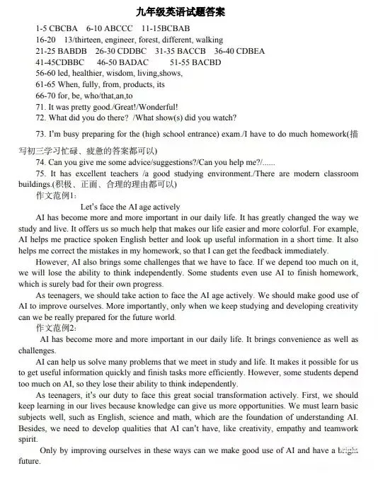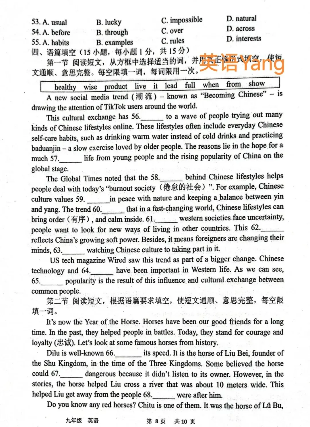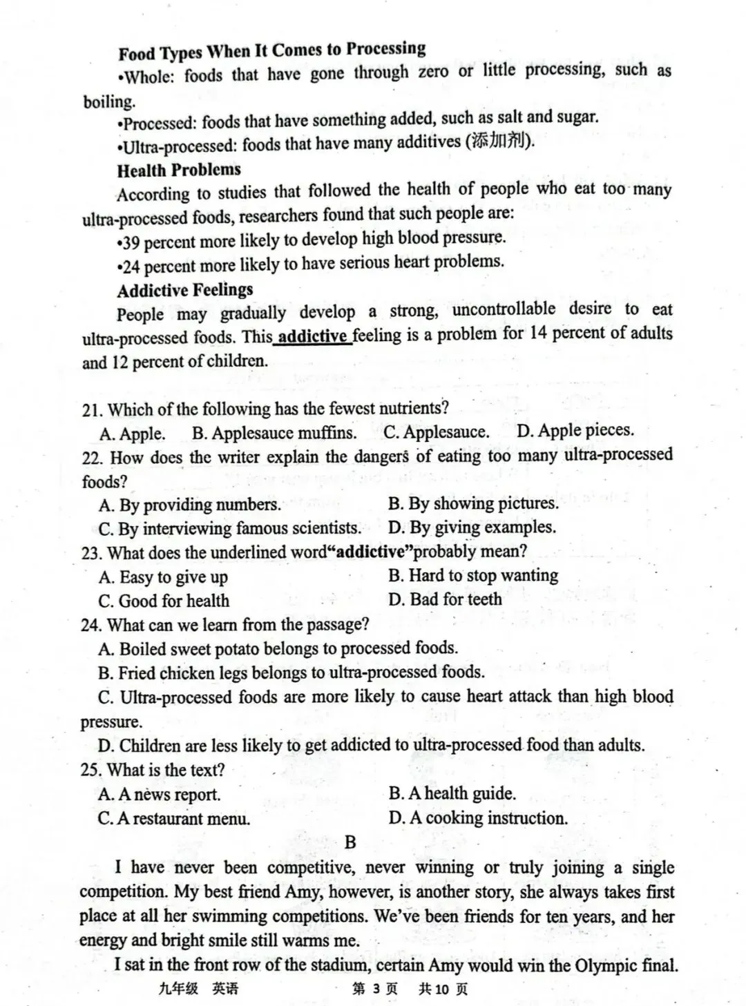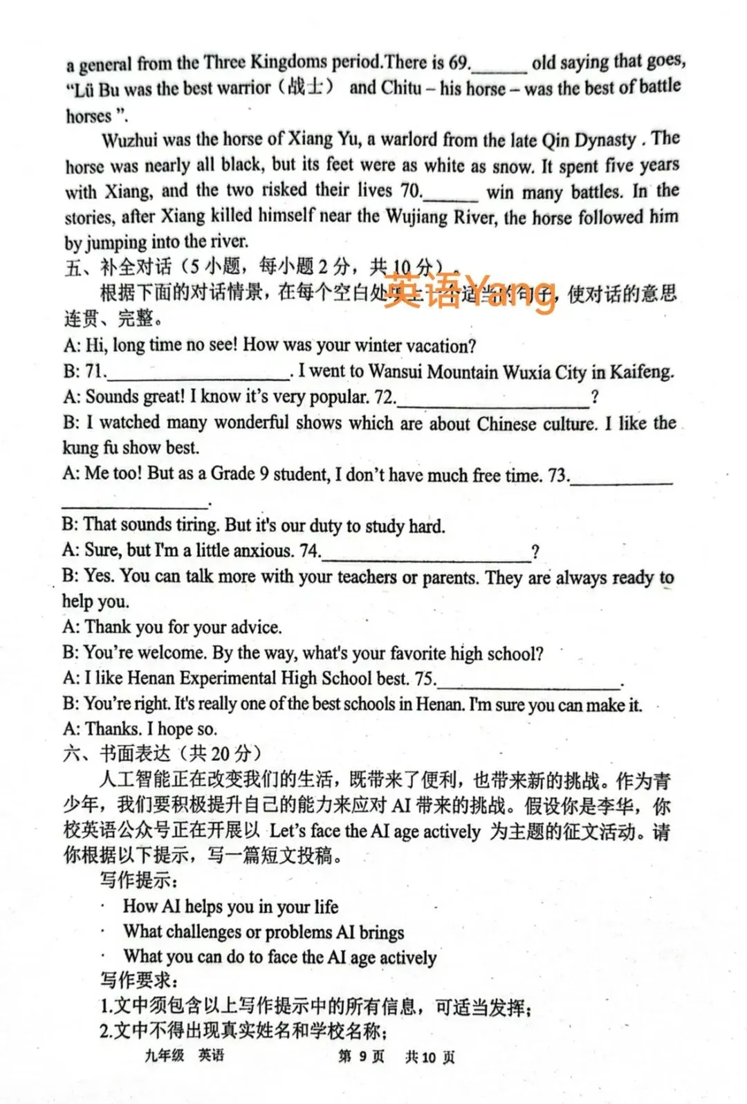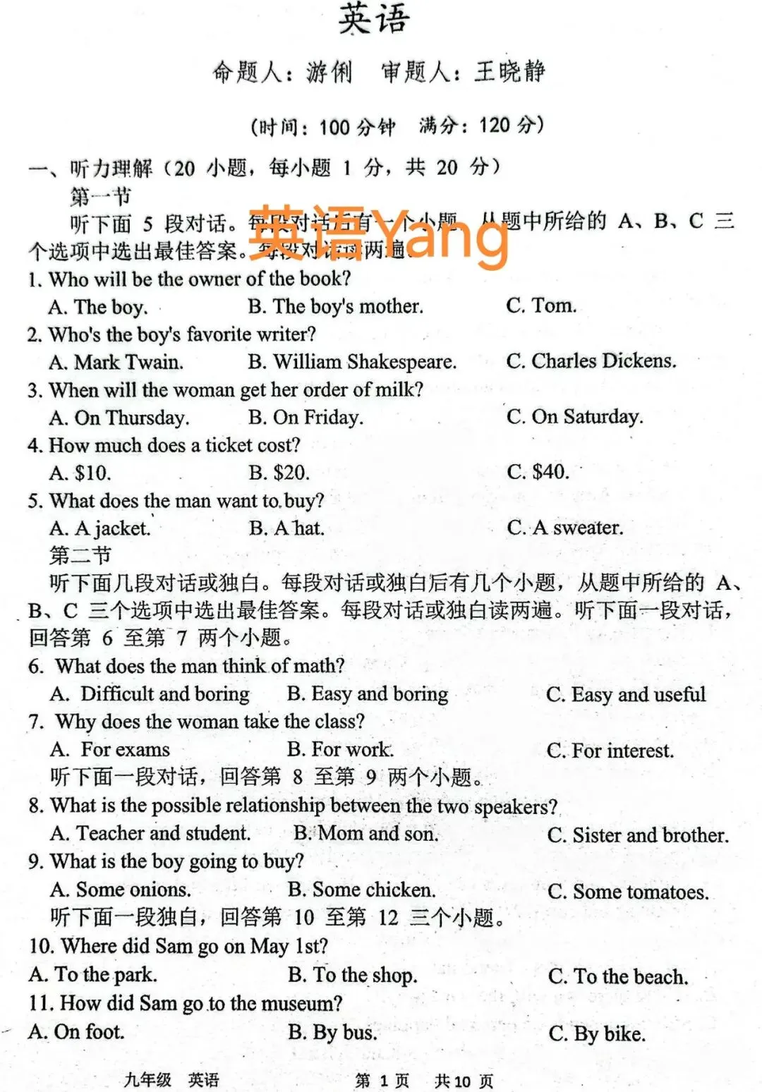 >25-26河南省实验中学中考一模试卷(附听力及答案)