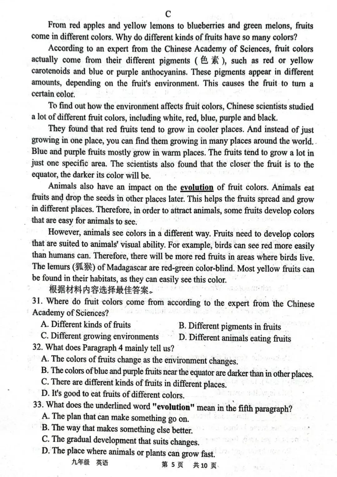 25-26郑州外国语中考一模试卷(附听力及答案)