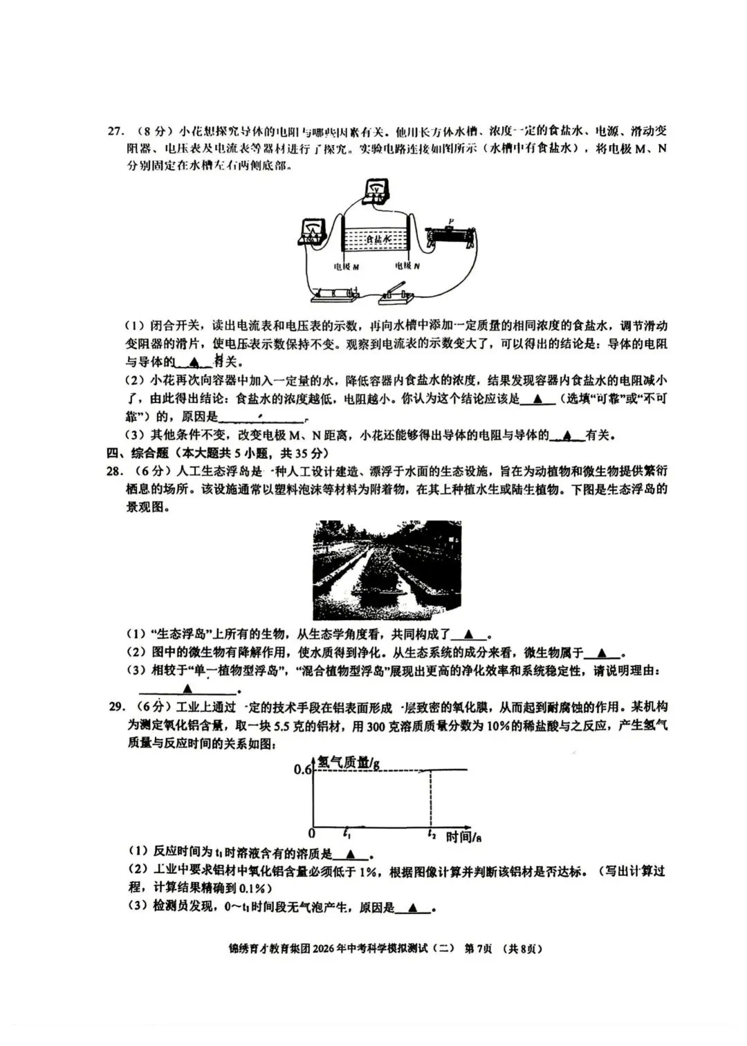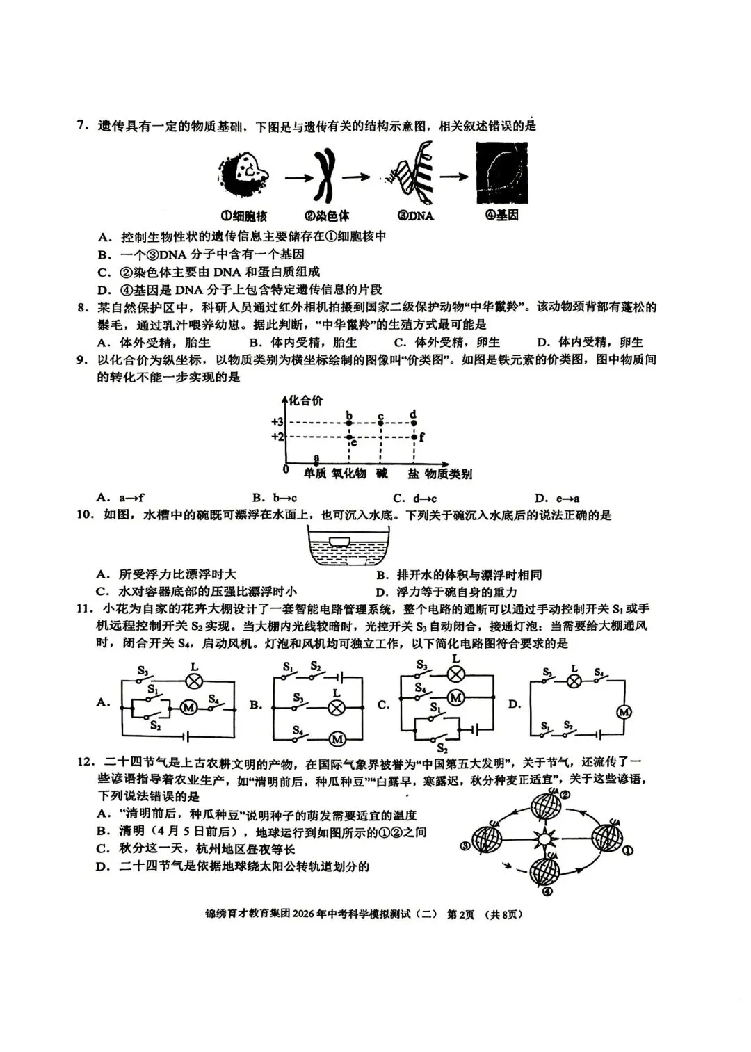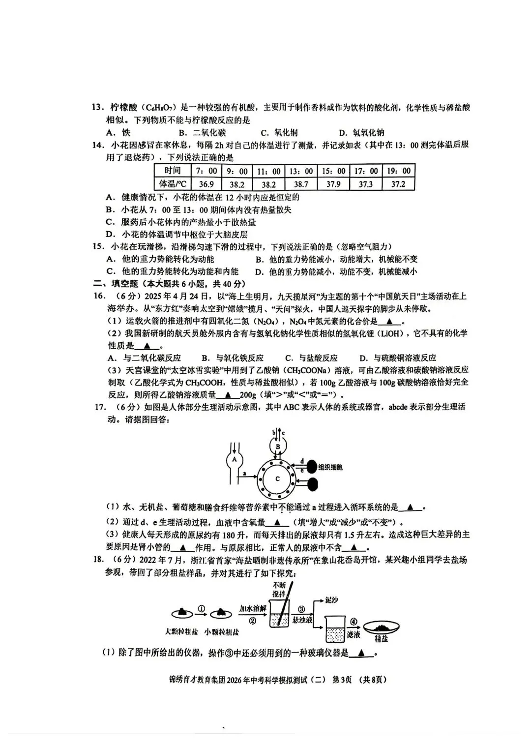 【2026浙江试卷】杭州锦绣育才中考二模科学试卷(2026.4)