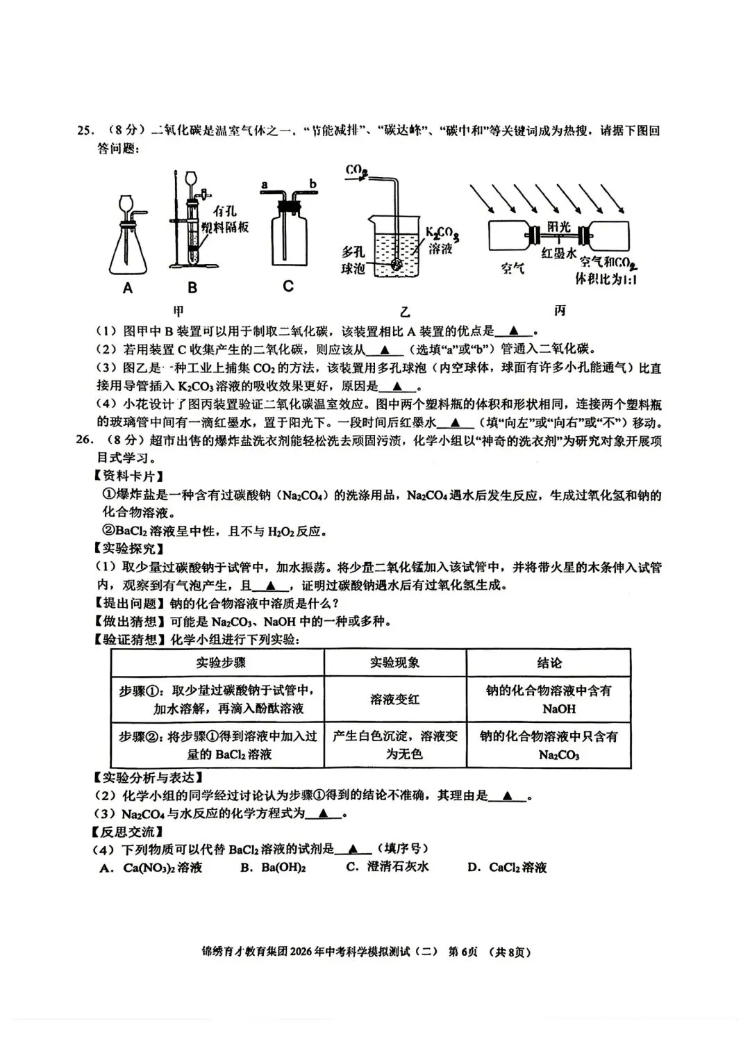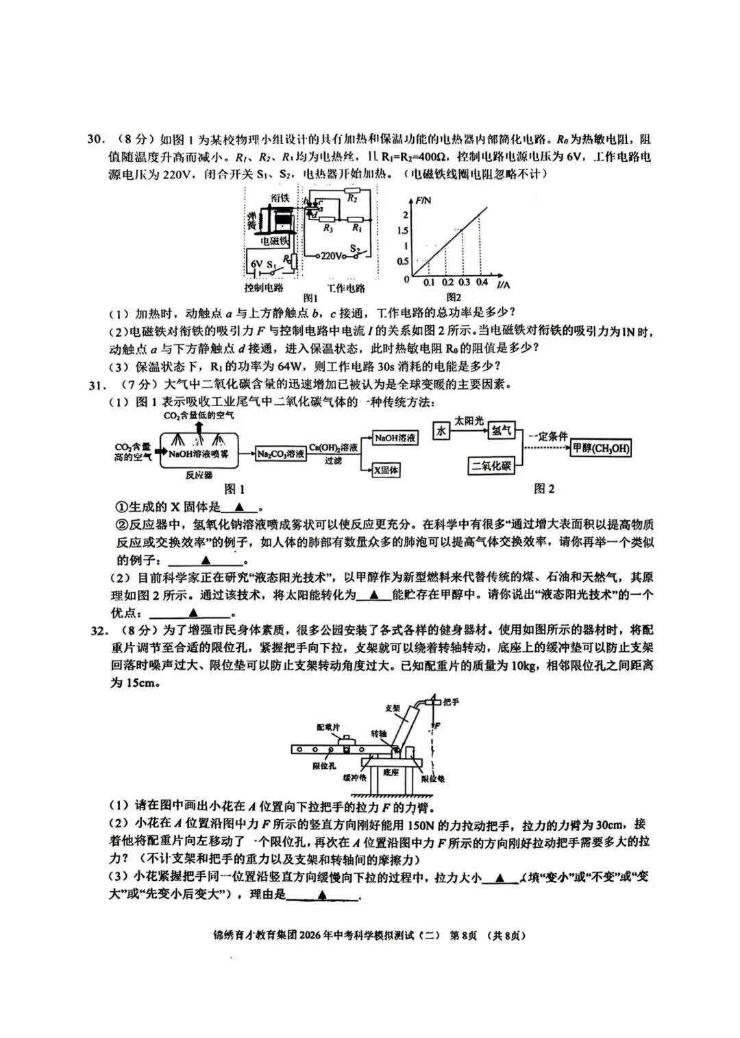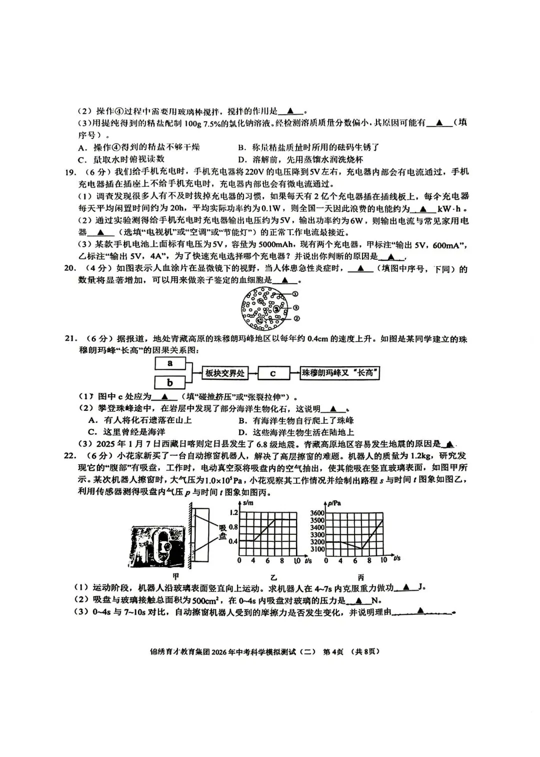 【2026浙江试卷】杭州锦绣育才中考二模科学试卷(2026.4)