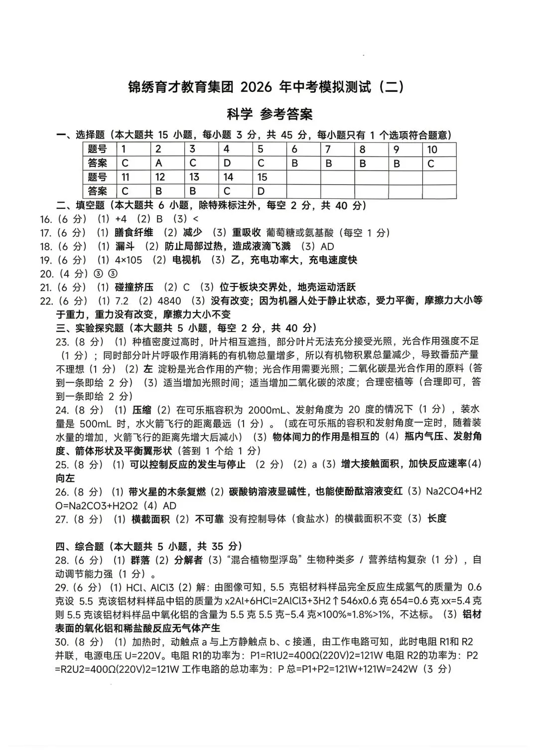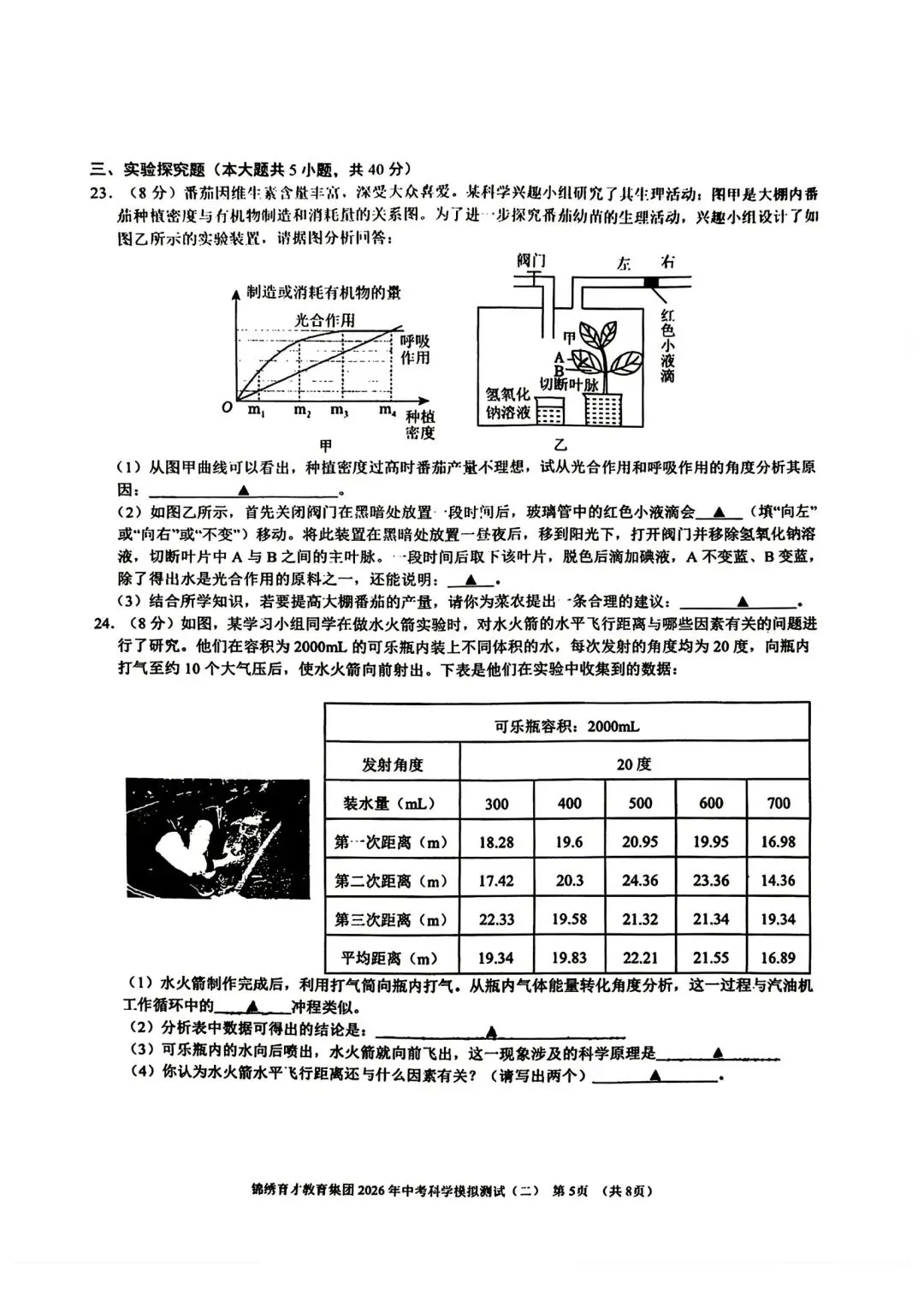 >【2026浙江试卷】杭州锦绣育才中考二模科学试卷(2026.4)