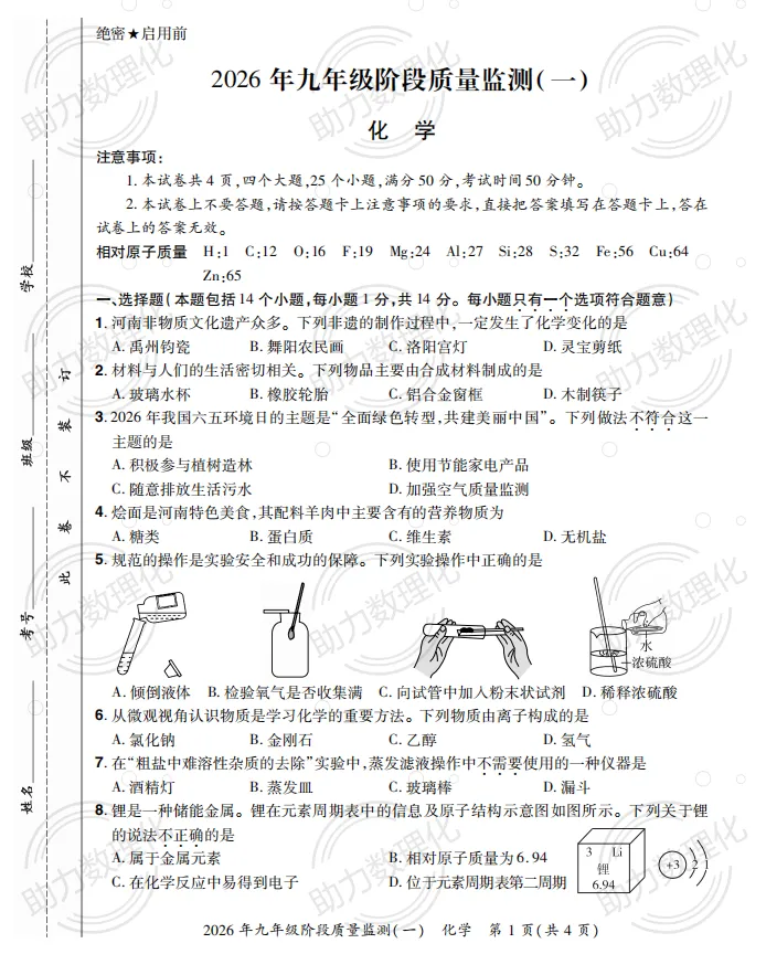 2026年洛阳市九年级新联考限时训练一试卷及答案含答题卡(七科全)