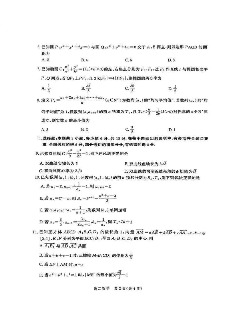 当前位置:首页>考研真题>《高中试卷》河北省名校联盟2025-2026学年高二上学期1月期末教学质量监测数学 (含答案)