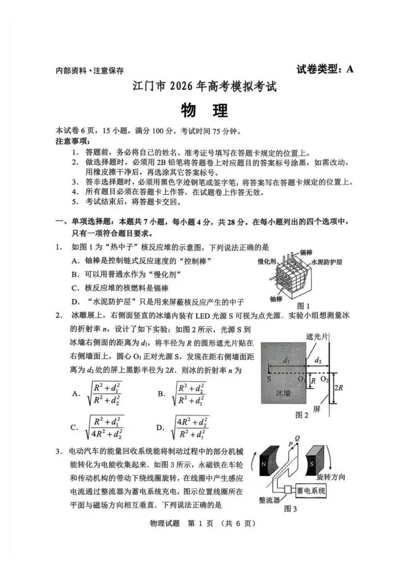 当前位置:首页>考研真题>《高中试卷》广东省江门市2026届高三下学期高考模拟物理试卷(含答案)