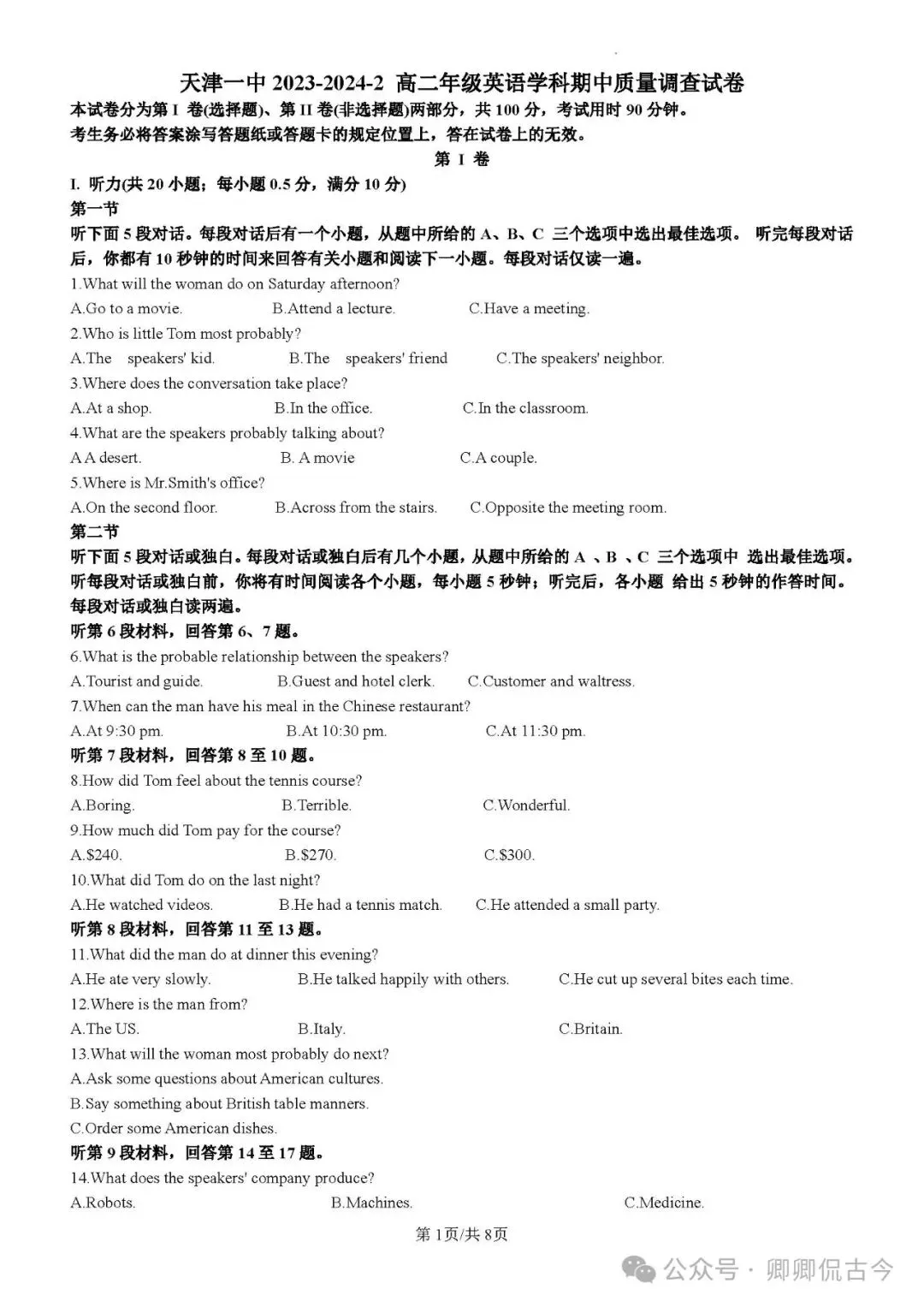 【考前热身】天津高考英语听力真题