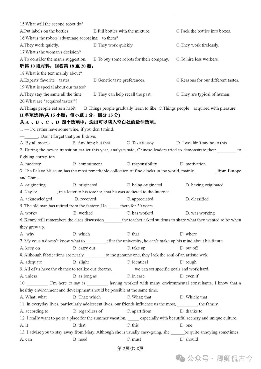 【目录5】高中英语单选题大全(持续更新中~)