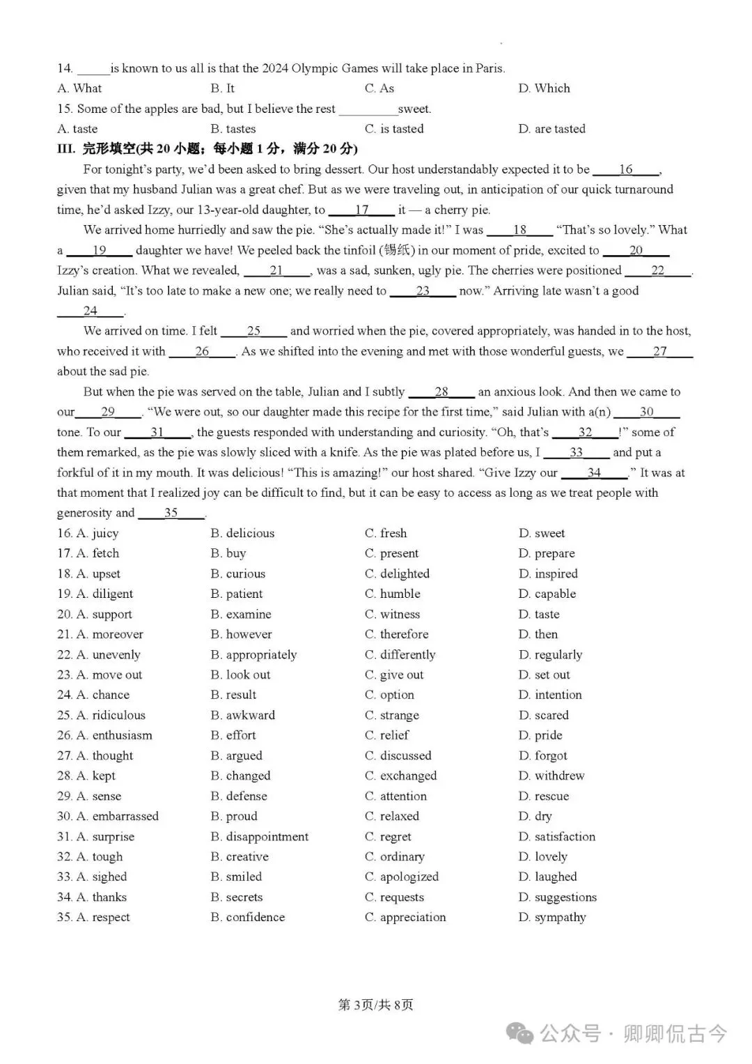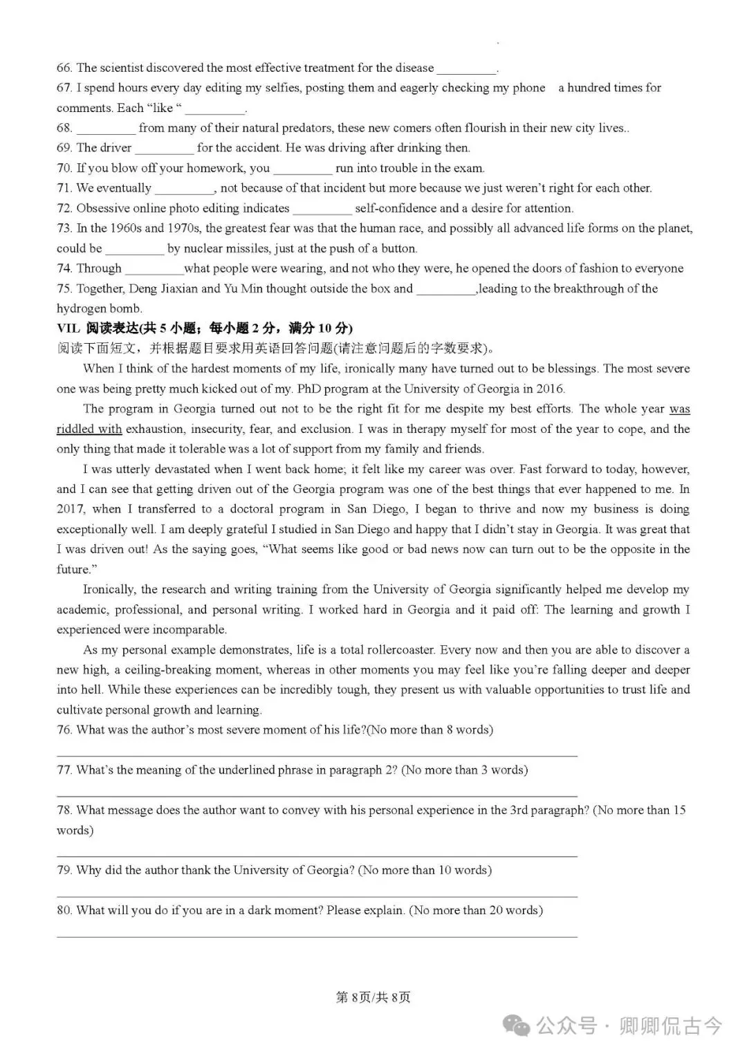 【目录2】高中英语完形填空限时训练大全(持续更新中~)