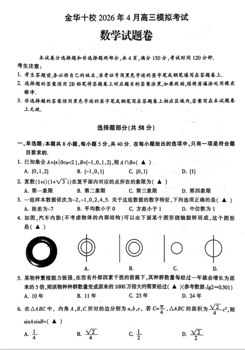 最近,我仔细研究了2026年4月金华十校高三第二次模拟考试数学试题,不得不说,这是一份质量相当高的模拟卷。今天就来和大家聊聊这份试卷的特点,以及为什么我强烈推荐它。