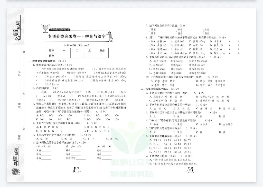 《冲刺重点初中小学毕业班总复习活页试卷》小升初语文数学英语【通用】丨pdf电子版,可下载打印,链接:https://pan.quark.cn/s/a8f3f70e8cf6