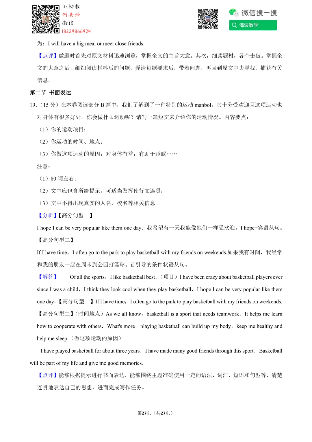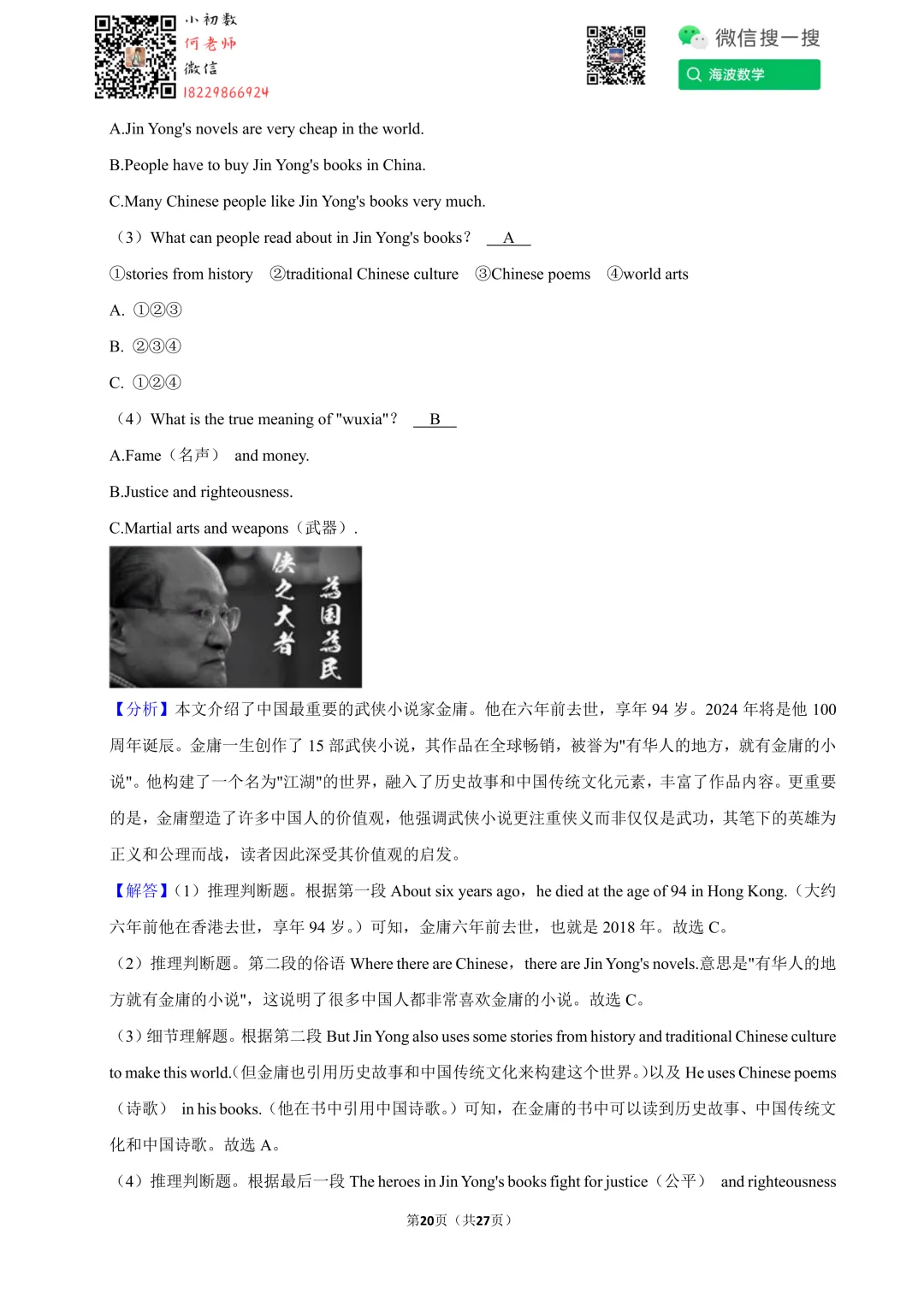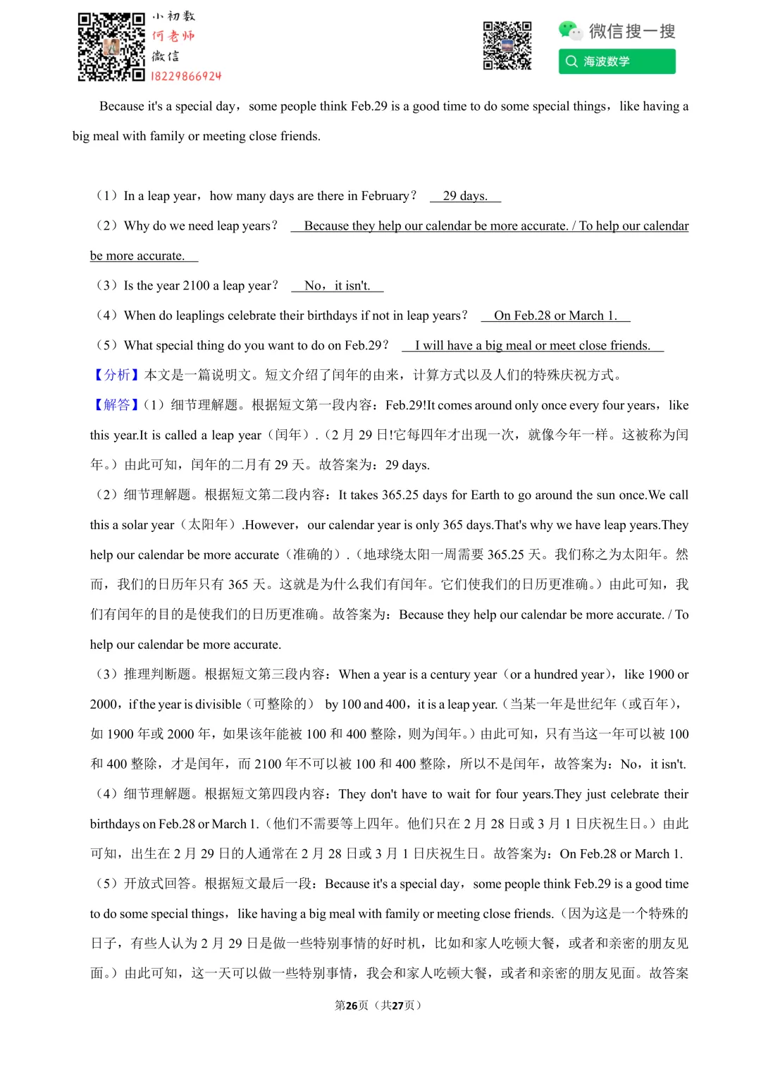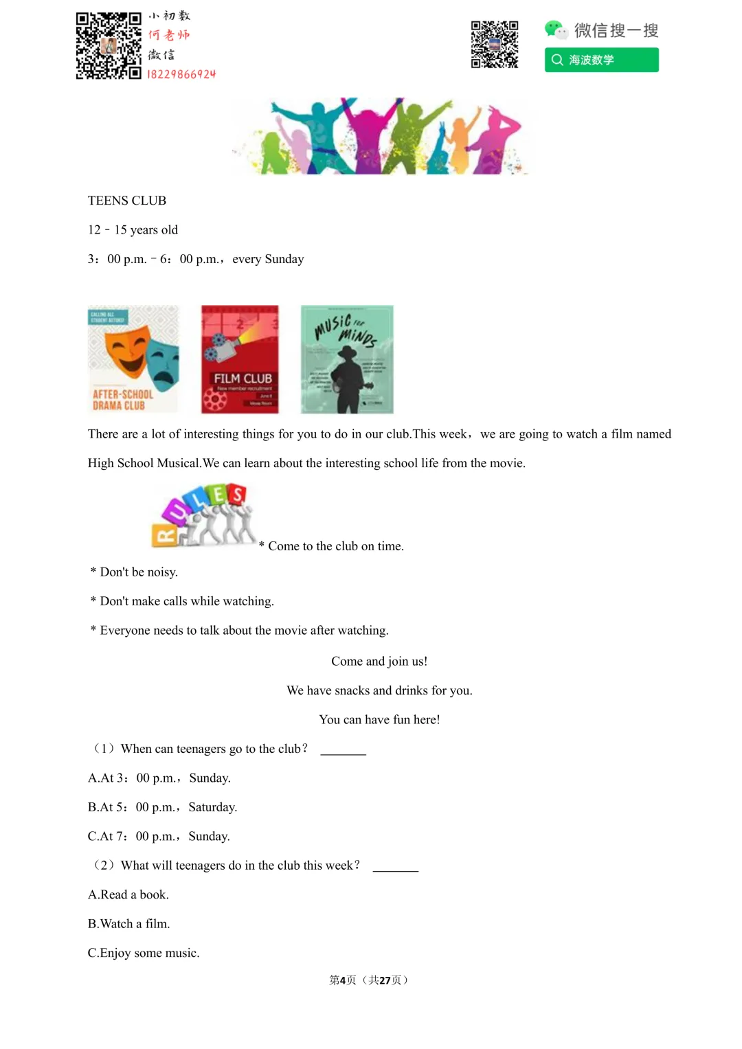①扫码添加何老师微信进对应年级资料分享微信群