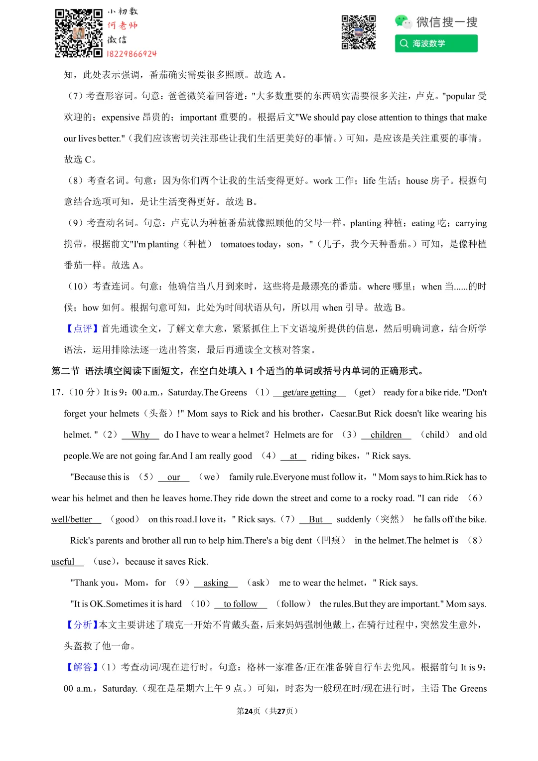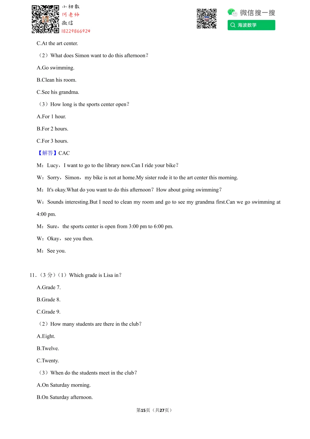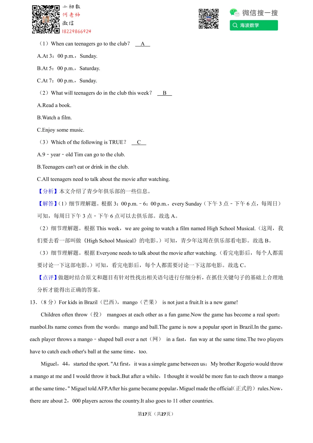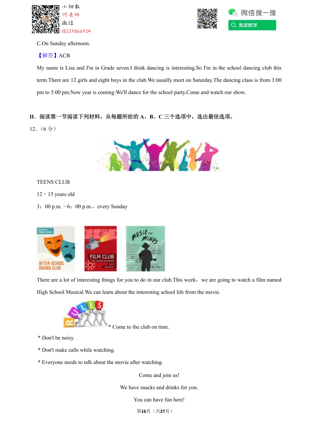 ①扫码添加何老师微信进对应年级资料分享微信群