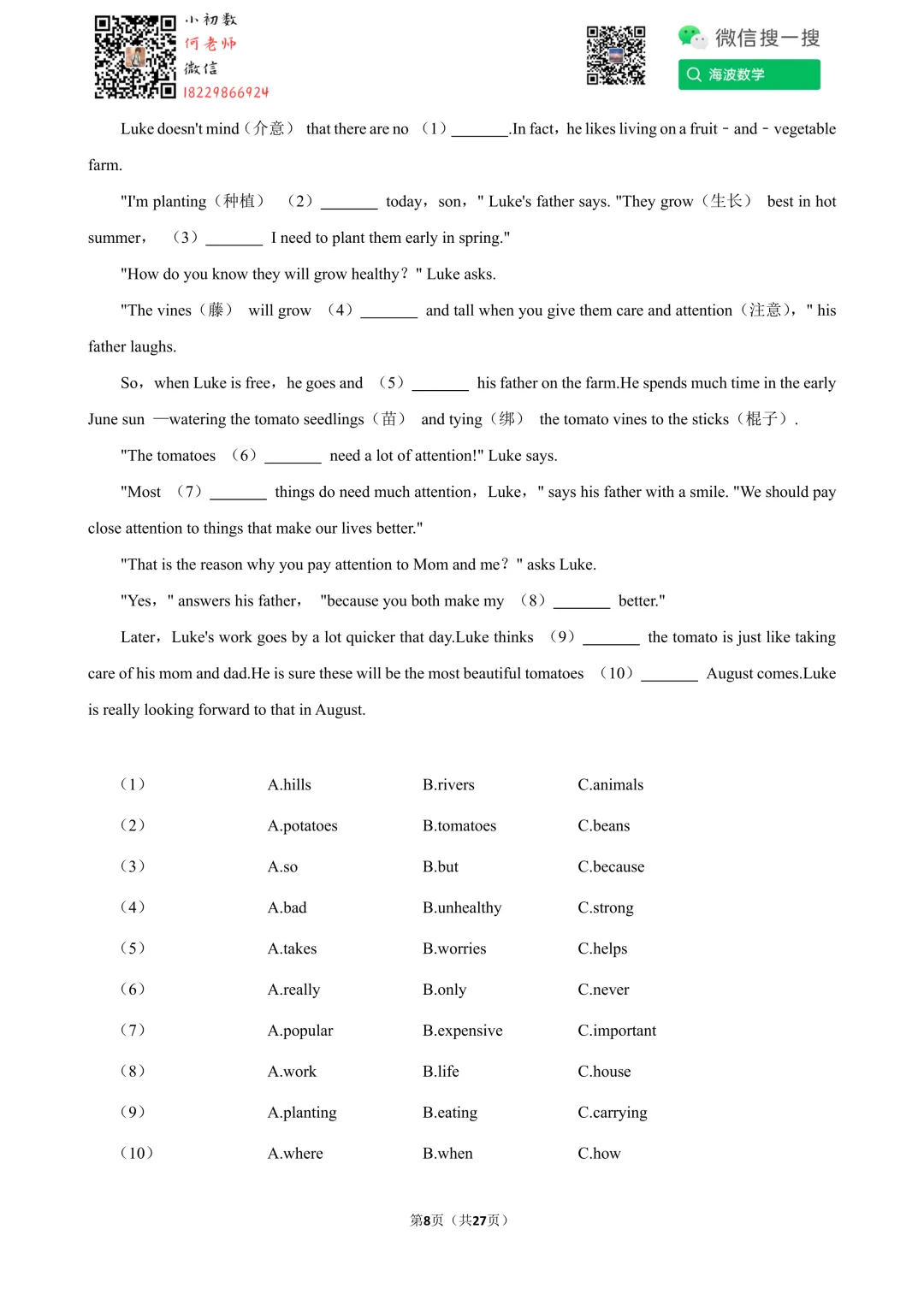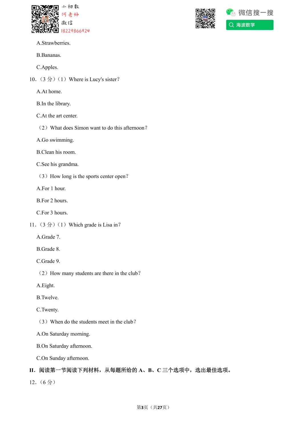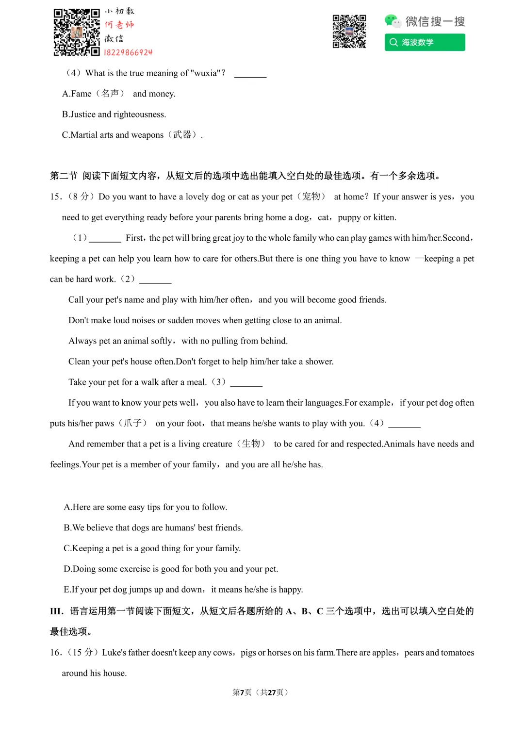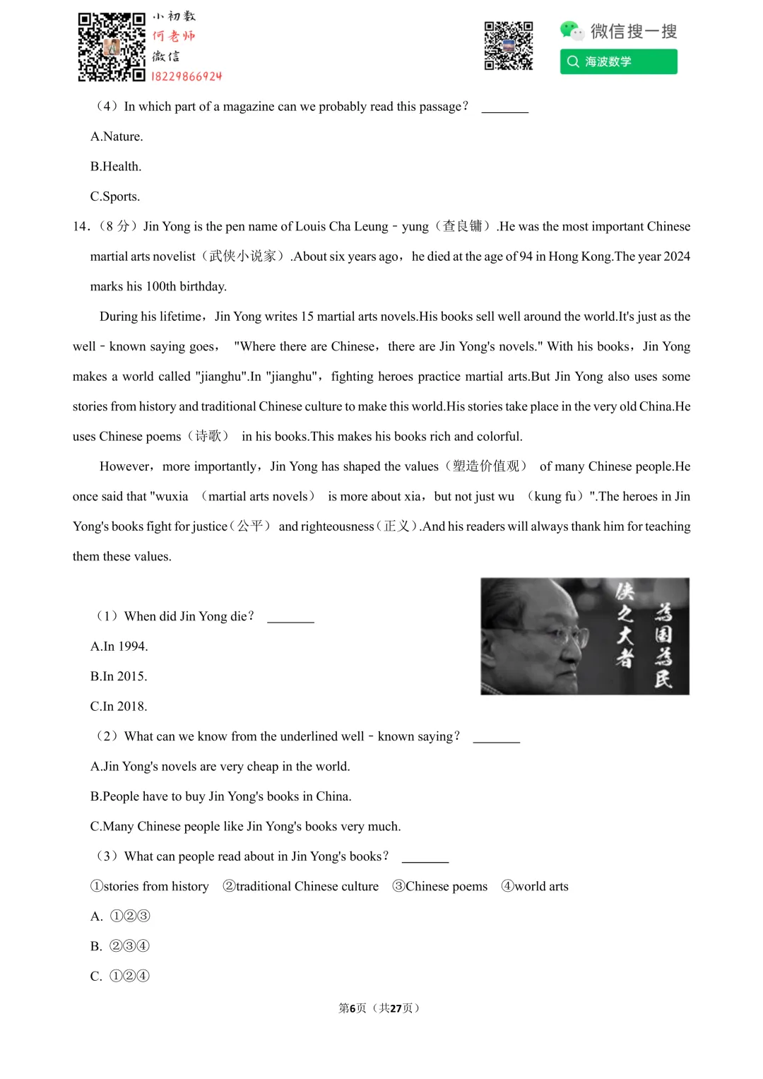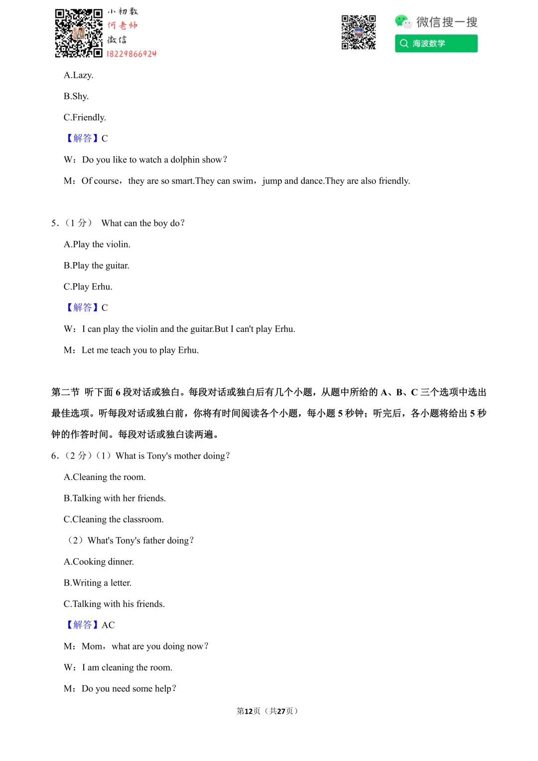 ①扫码添加何老师微信进对应年级资料分享微信群