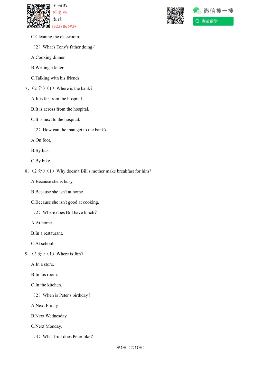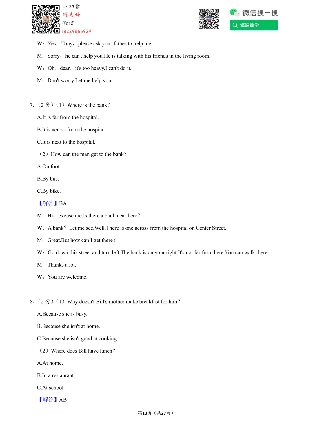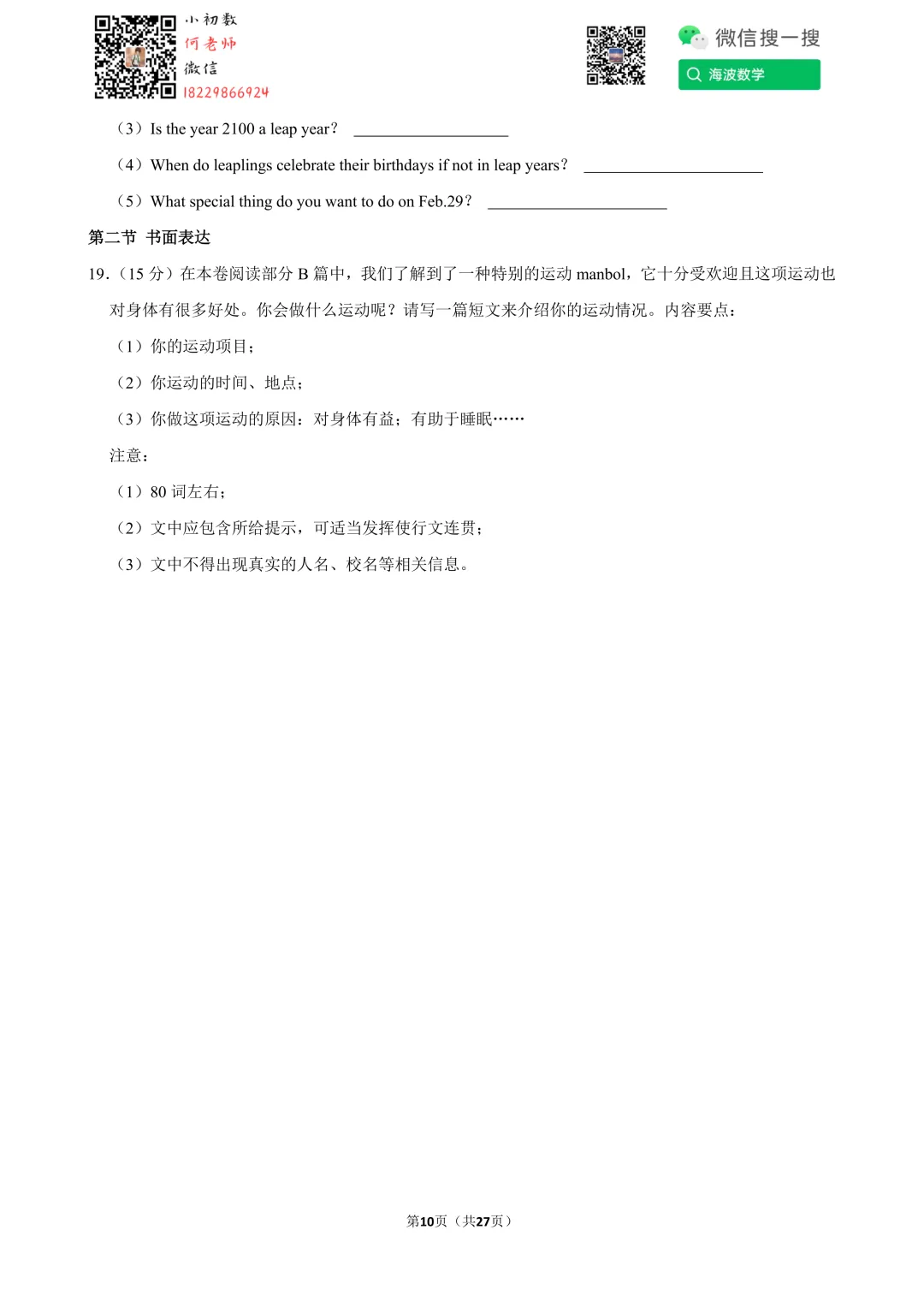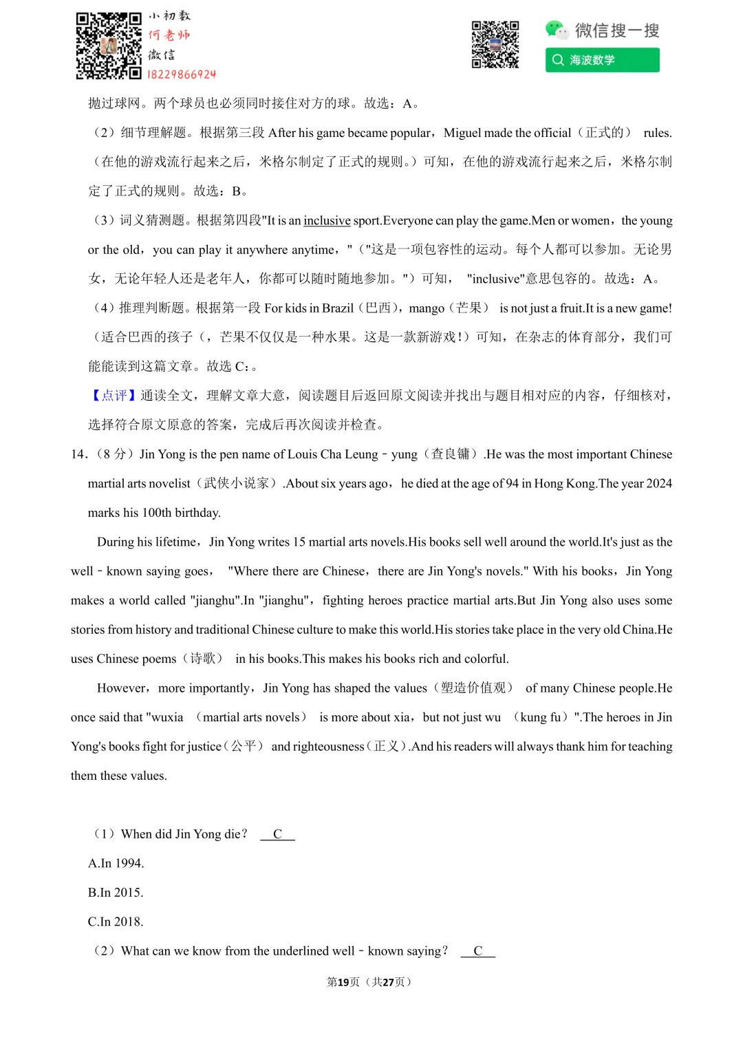 ①扫码添加何老师微信进对应年级资料分享微信群