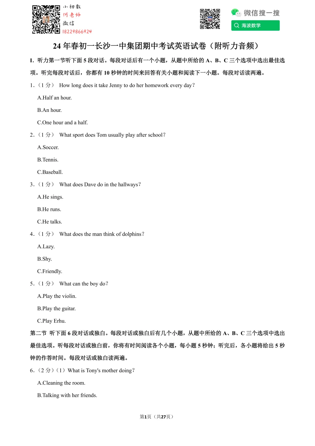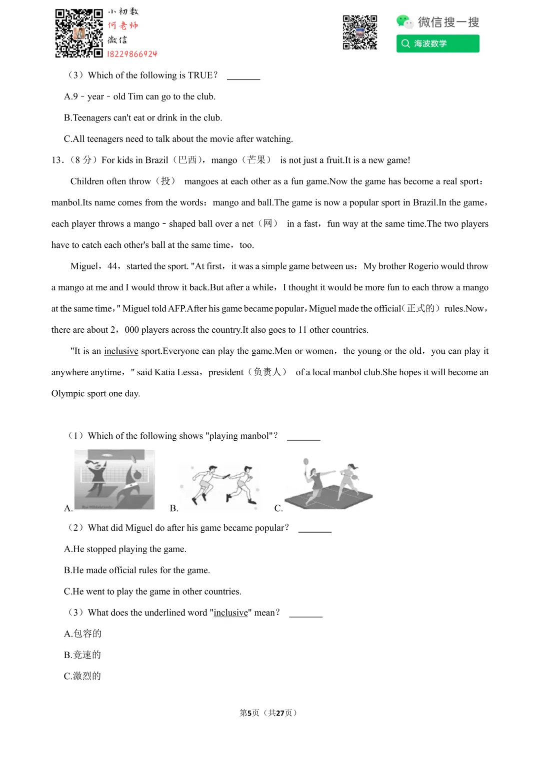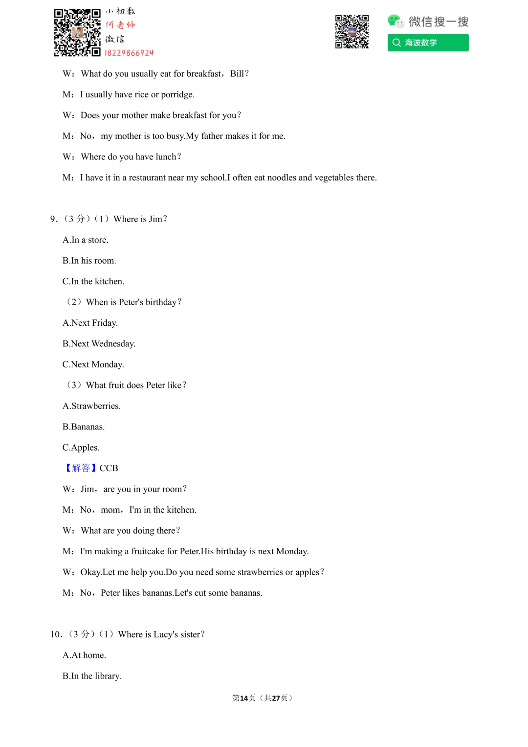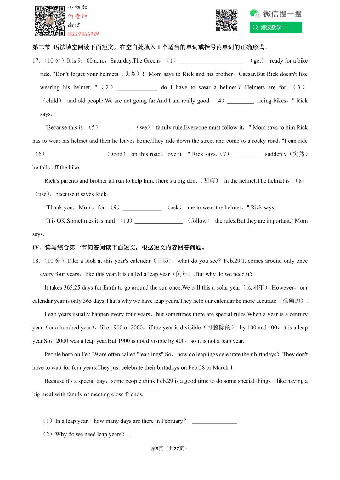 ①扫码添加何老师微信进对应年级资料分享微信群