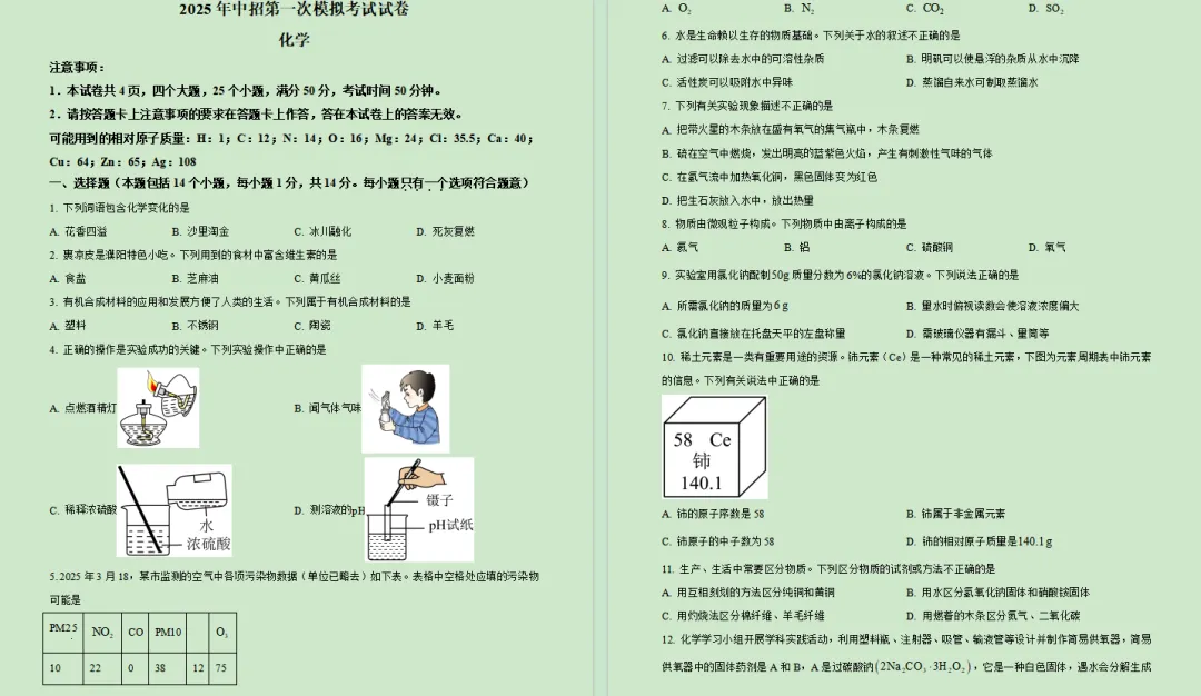 2025年化学一模试卷如下: