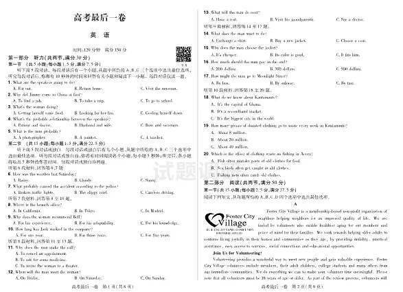 [一模]2026年洛阳市涧西区中招一模试卷(7科全)试卷及部分答案