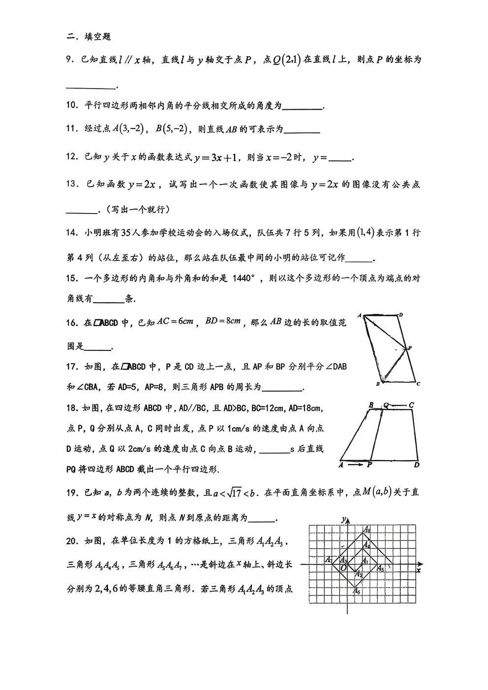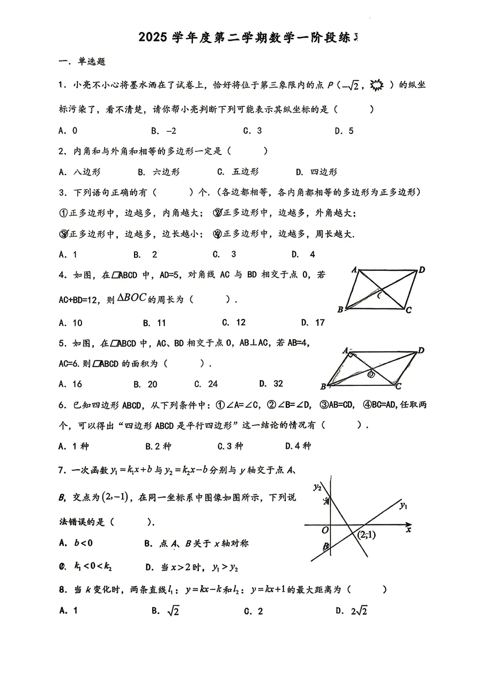 2026年铁一滨河七下第一次月考数学试卷