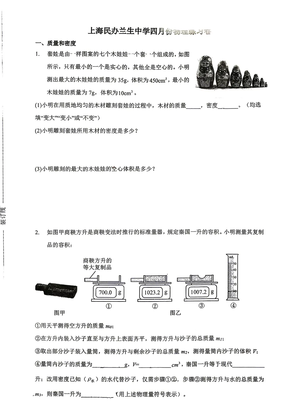 我们收集了今年兰生4月份八年级数理化试卷,