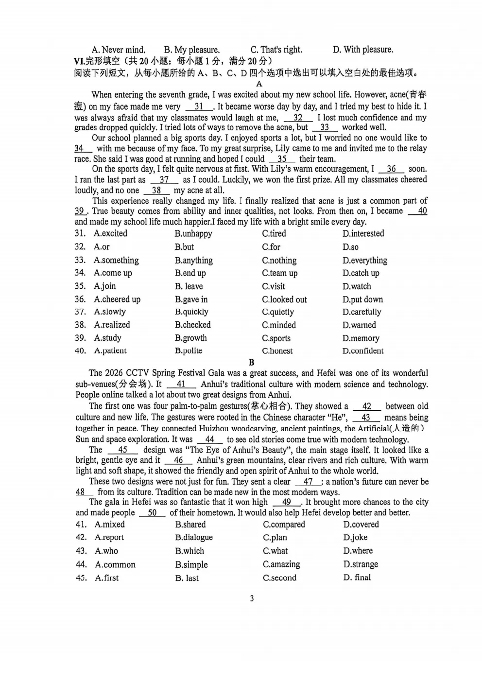 26年济南初三高新区英语一模试卷