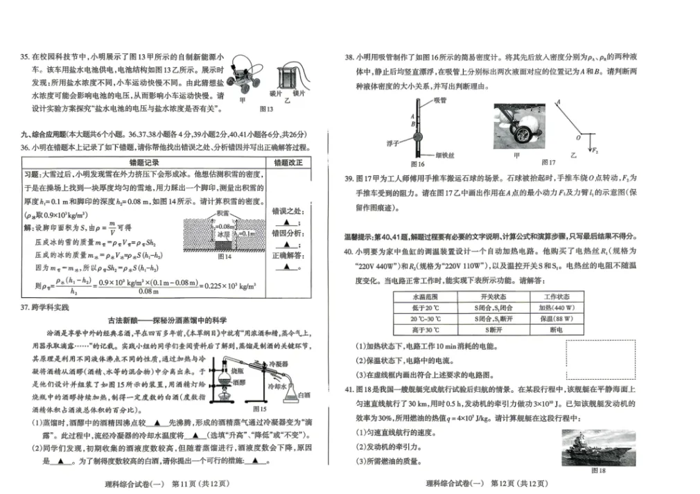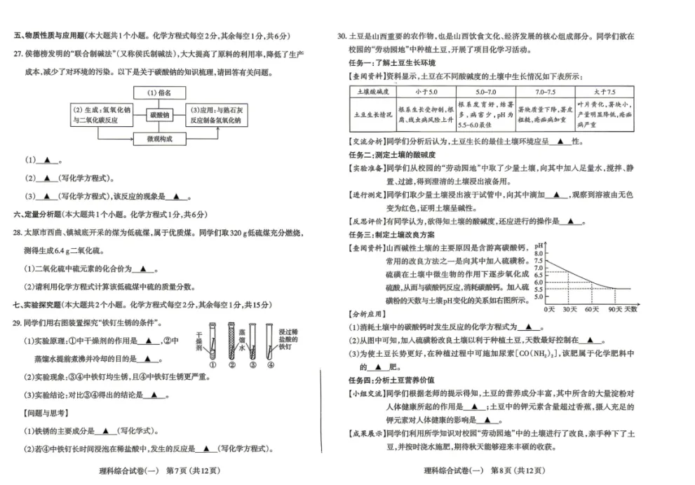 【一模·理综】2026太原初三一模理综试卷+答案(高清电子版免费下载!)