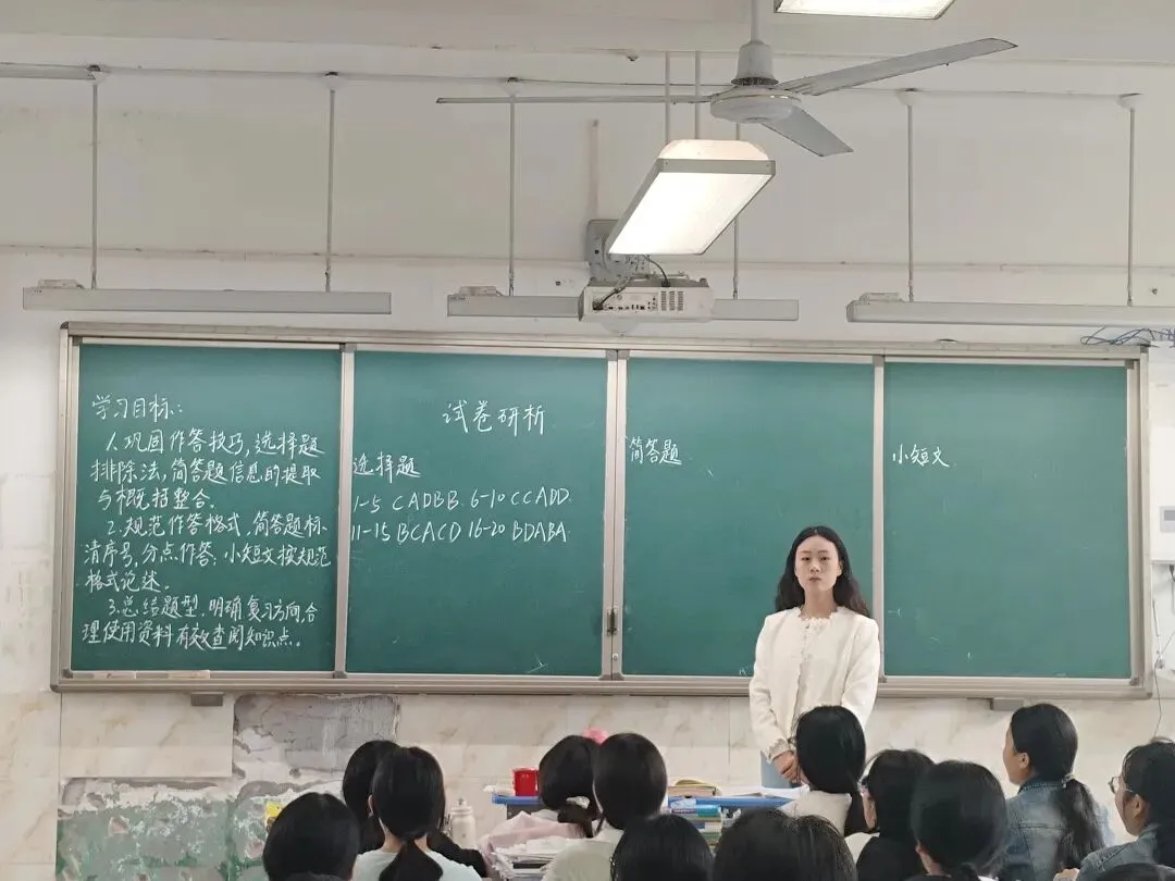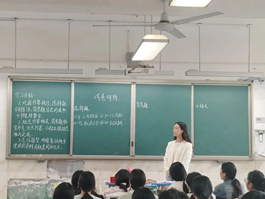 全体教师围绕郑欢欢老师的试卷研析内容及课堂教学实践,展开深入集体评课,充分肯定亮点的同时,提出优化建议。课堂亮点突出:郑老师的试卷研析紧密贴合学生实际,将考点分析与答题指导深度融合,课堂设计逻辑清晰、重点突出,通过例题拆解、错题归因、师生互动等环节,有效引导学生掌握解题方法;教学中注重家国情怀渗透,结合历史事件与现实关联,激发学生学习兴趣,课堂效率高。改进建议务实:老师们建议进一步强化分层教学,针对不同基础学生设计差异化复习任务;增加限时训练环节,提升学生答题速度;加强与其他学科复习联动,实现跨学科知识融合,助力学生综合素养提升。