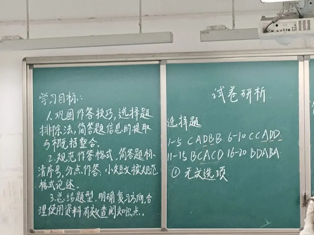 经过集体研讨,九年级历史教研组形成统一复习共识:一是以本次试卷研析为契机,全面梳理中考考点,细化复习计划,确保每节复习课目标明确、内容精准;二是持续强化答题技巧与规范训练,通过每周专项练习、模拟阅卷等方式,帮助学生巩固提升;三是建立学生错题档案,针对高频错题开展靶向辅导,做到“因材施教、精准提分”。全体教师将以此次听评课为抓手,凝心聚力、深耕细作,全力助力九年级学生冲刺中考,实现教学质量新突破。 参与人员:李春明 李旭东 高建信 唐杰