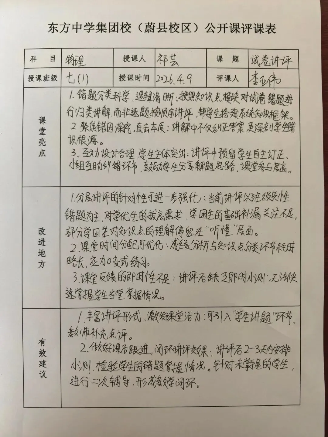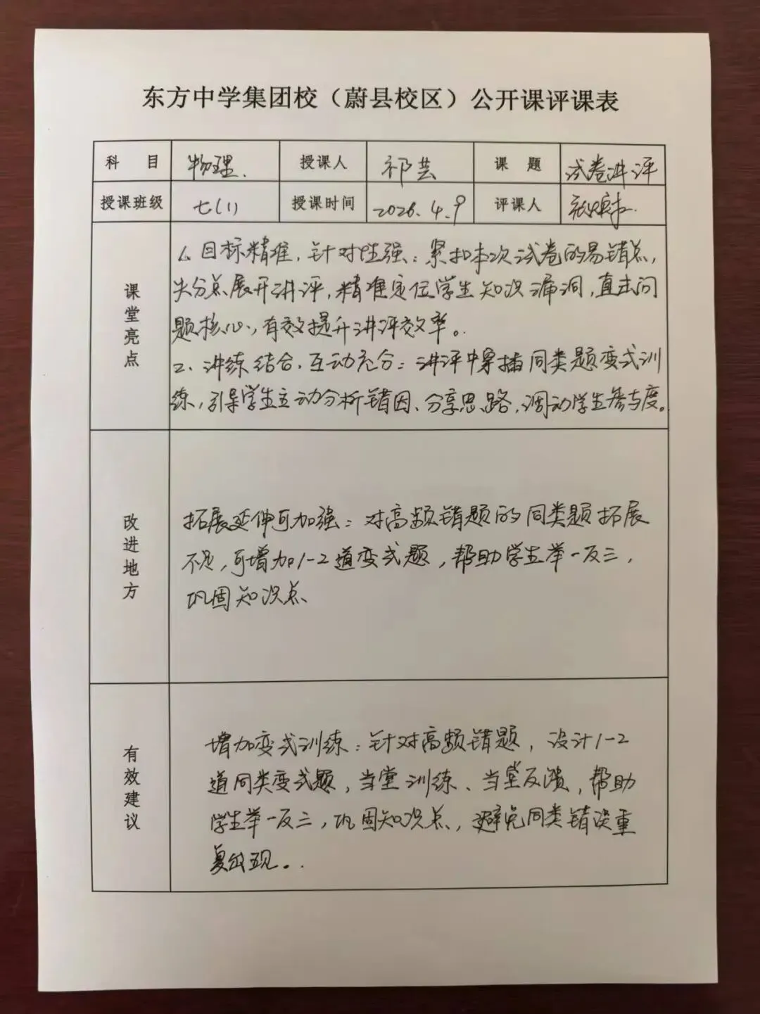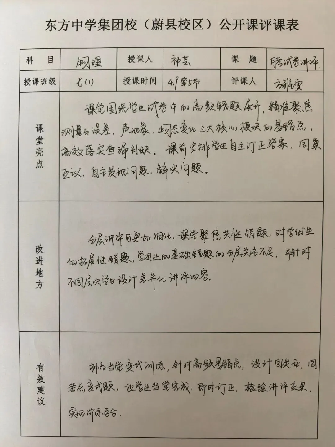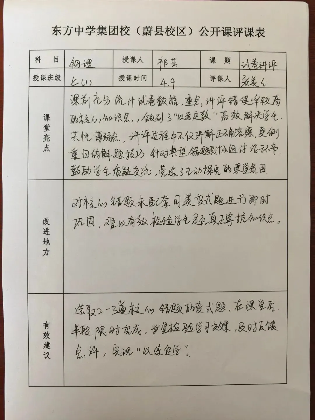 每一次测试,都是对学习成果的检验;每一次讲评,都是为了更好地前行。为帮助同学们清晰梳理知识漏洞,精准把握答题思路,总结阶段性学习得失,我校初中部开展了试卷讲评课,校领导和老师们积极参与听评课。课堂上,祁老师针对性剖析错题、梳理解题方法、纠正答题误区,带领同学们在反思中提升,在总结中进步。