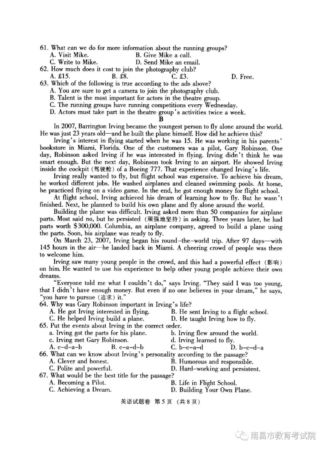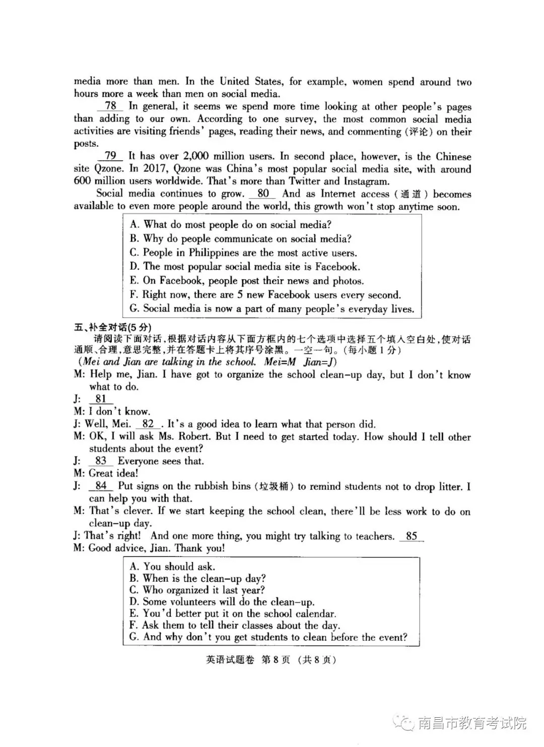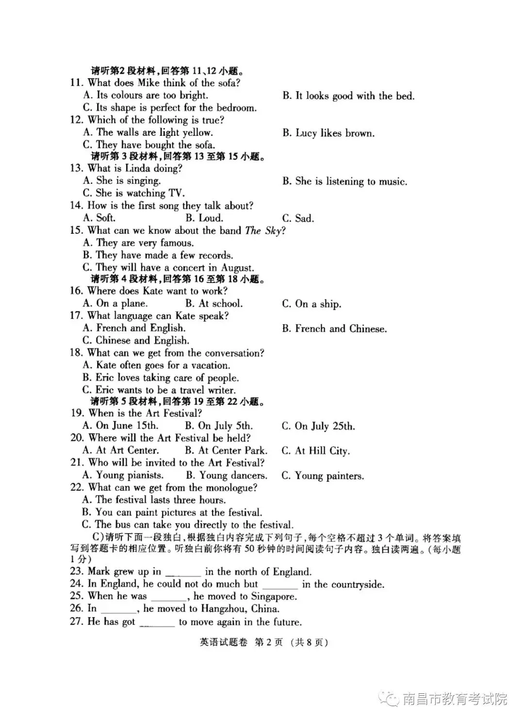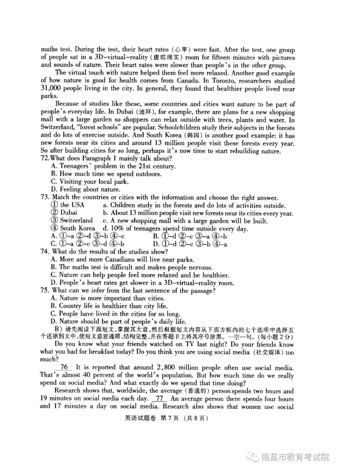 >速看!江西省2020年中考官方试卷及参考答案公布!快来估分!