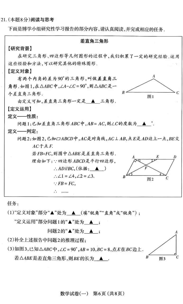 >2026太原数学一模试卷及答案(4.14上午)