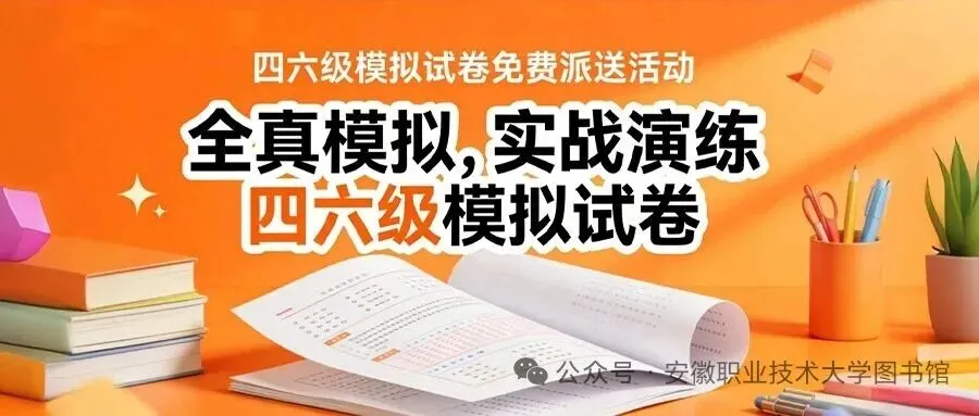 为服务我校学子四六级备考,2026年4月13日下午,安徽职业技术大学图书馆与起点考试网联合,在校图书馆一楼大厅成功举办了四六级模拟试卷赠送活动,受到备考学生们的一致好评。