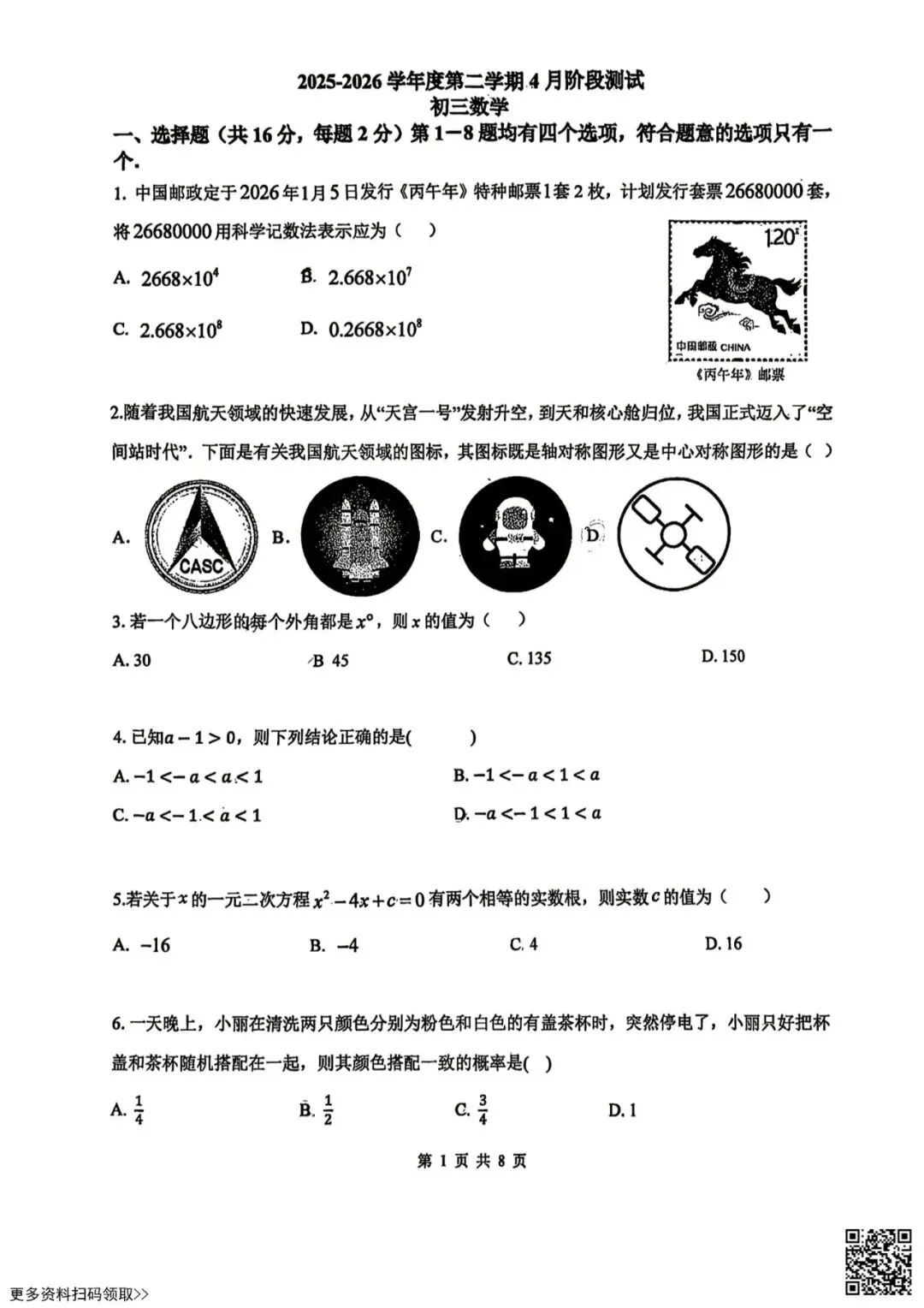 今天给大家分享的是2026北京十一中初三4月月考数学试卷(含答案),其他区域或学校的学生都可以练一练。近期会持续分享,欢迎大家多多关注,也可以把我们分享给更多人哦。