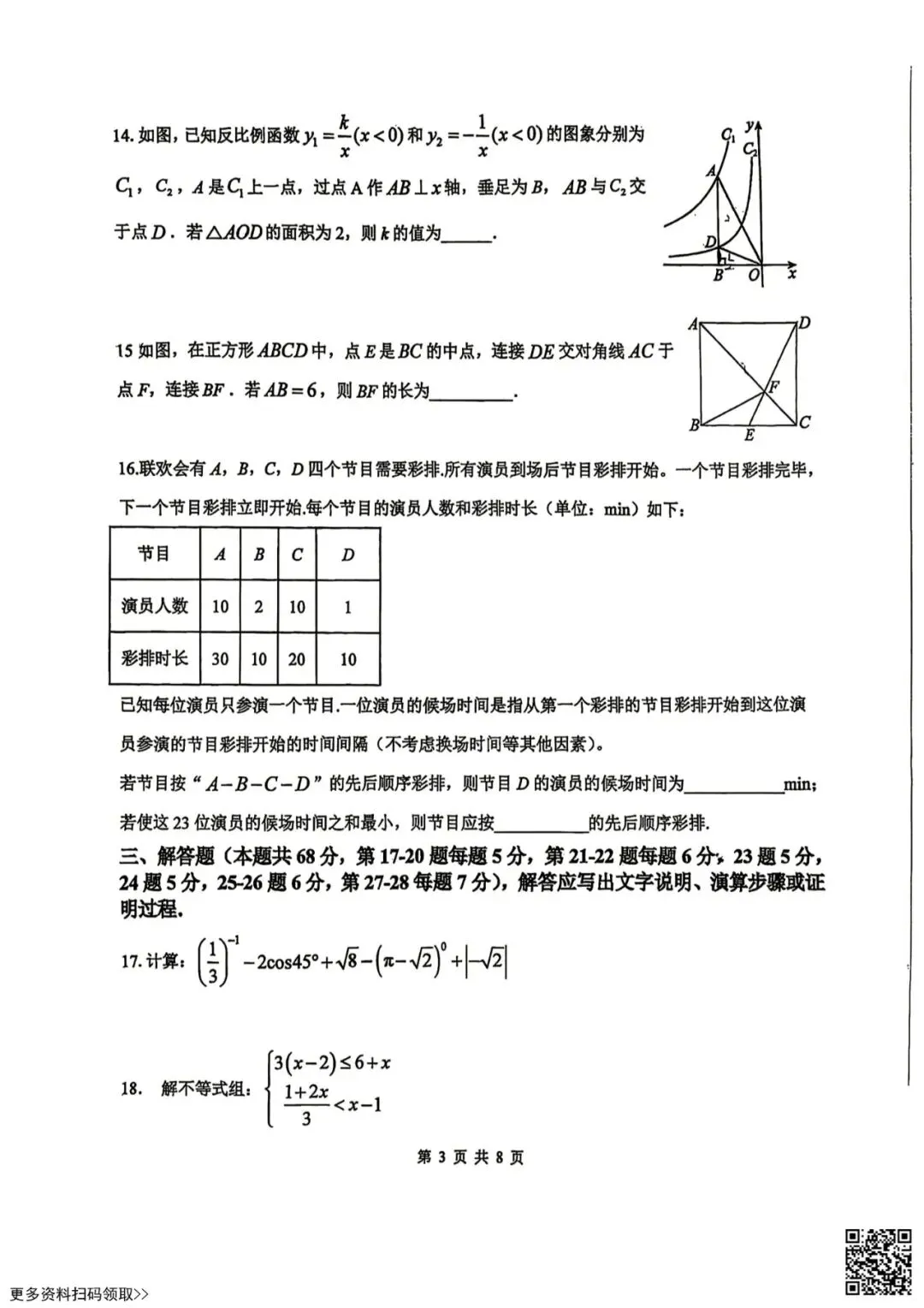 点击下方公众号名片,回复“试卷”,即可领取完整版试卷和答案↓↓↓