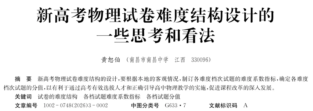 >【论文分享】新高考物理试卷难度结构设计的一些思考和看法
