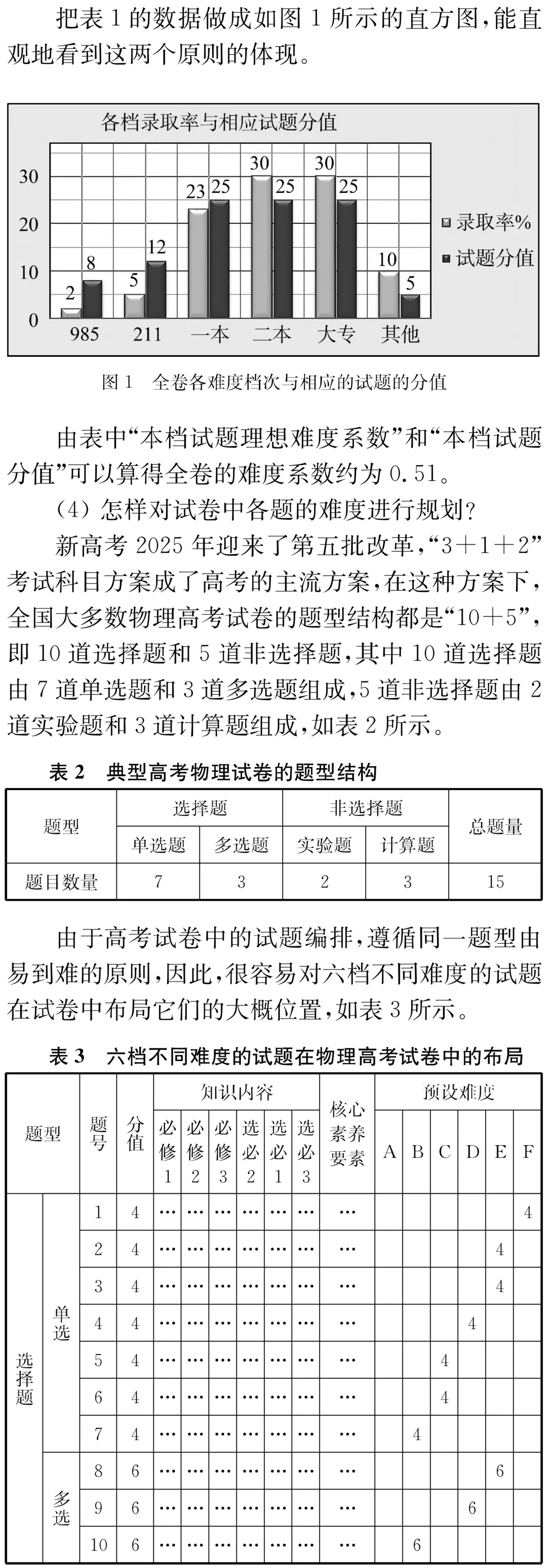 【论文分享】新高考物理试卷难度结构设计的一些思考和看法