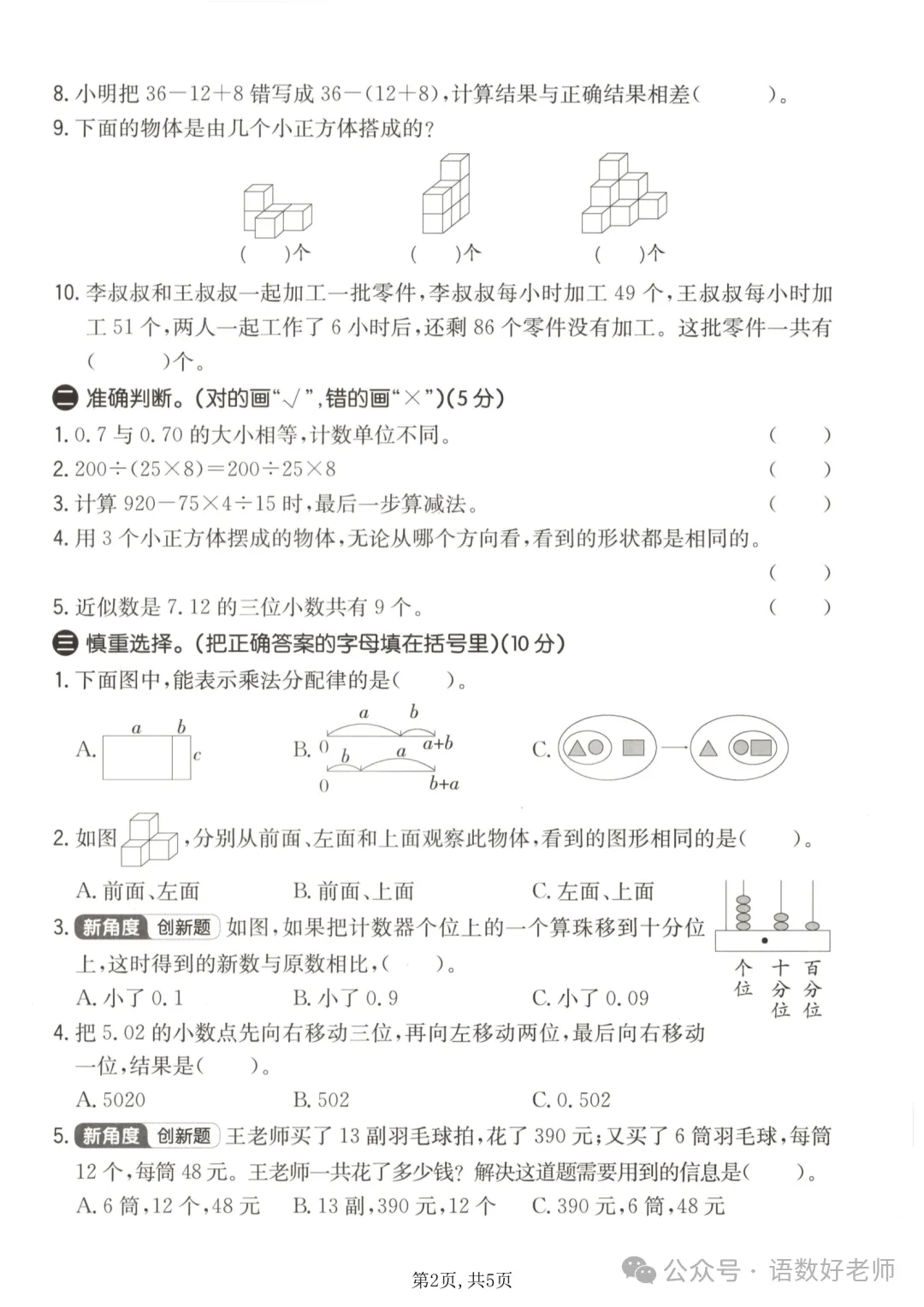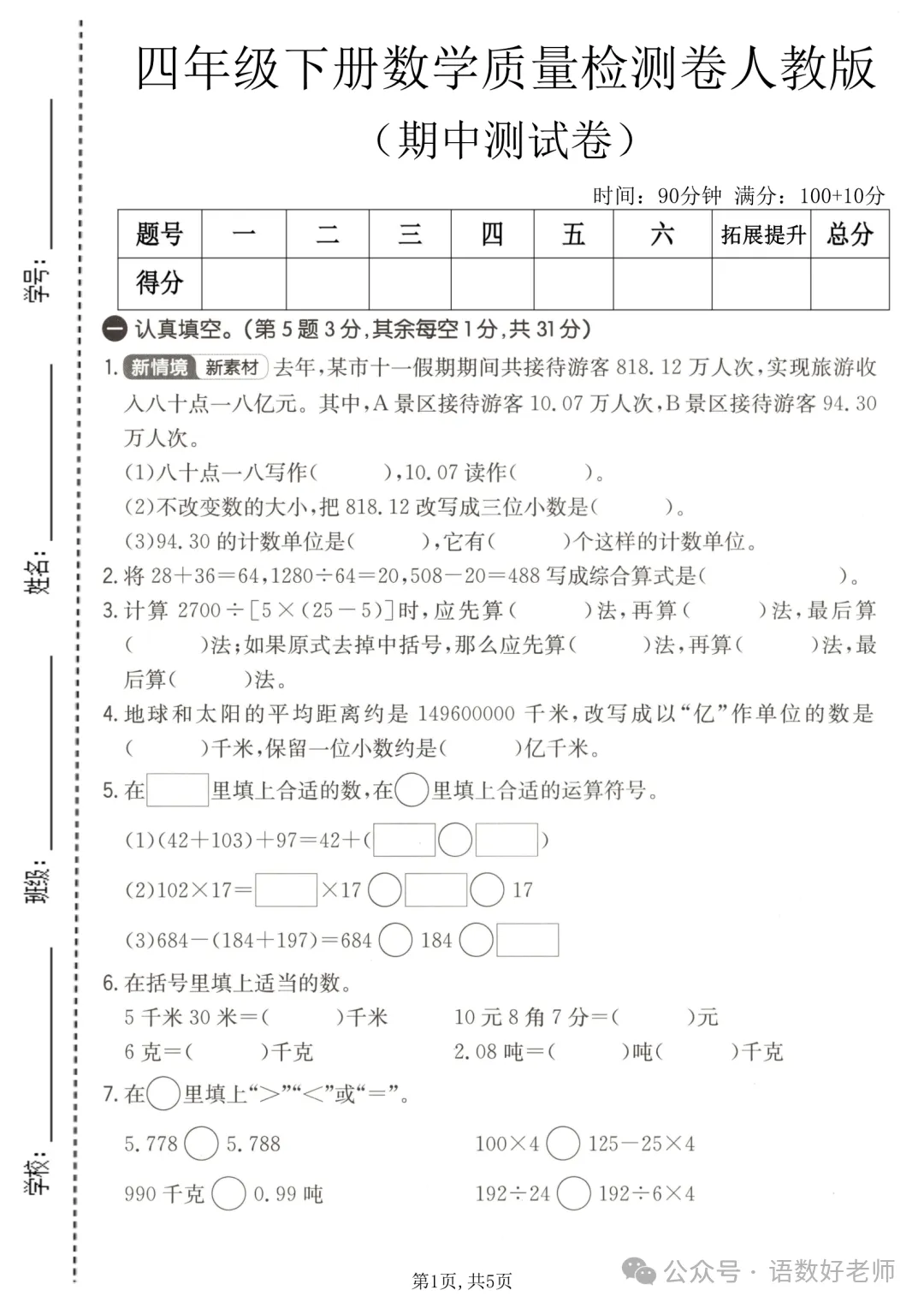 当前位置:首页>考研真题>四年级下册数学《期中试卷》可下载打印附有答案